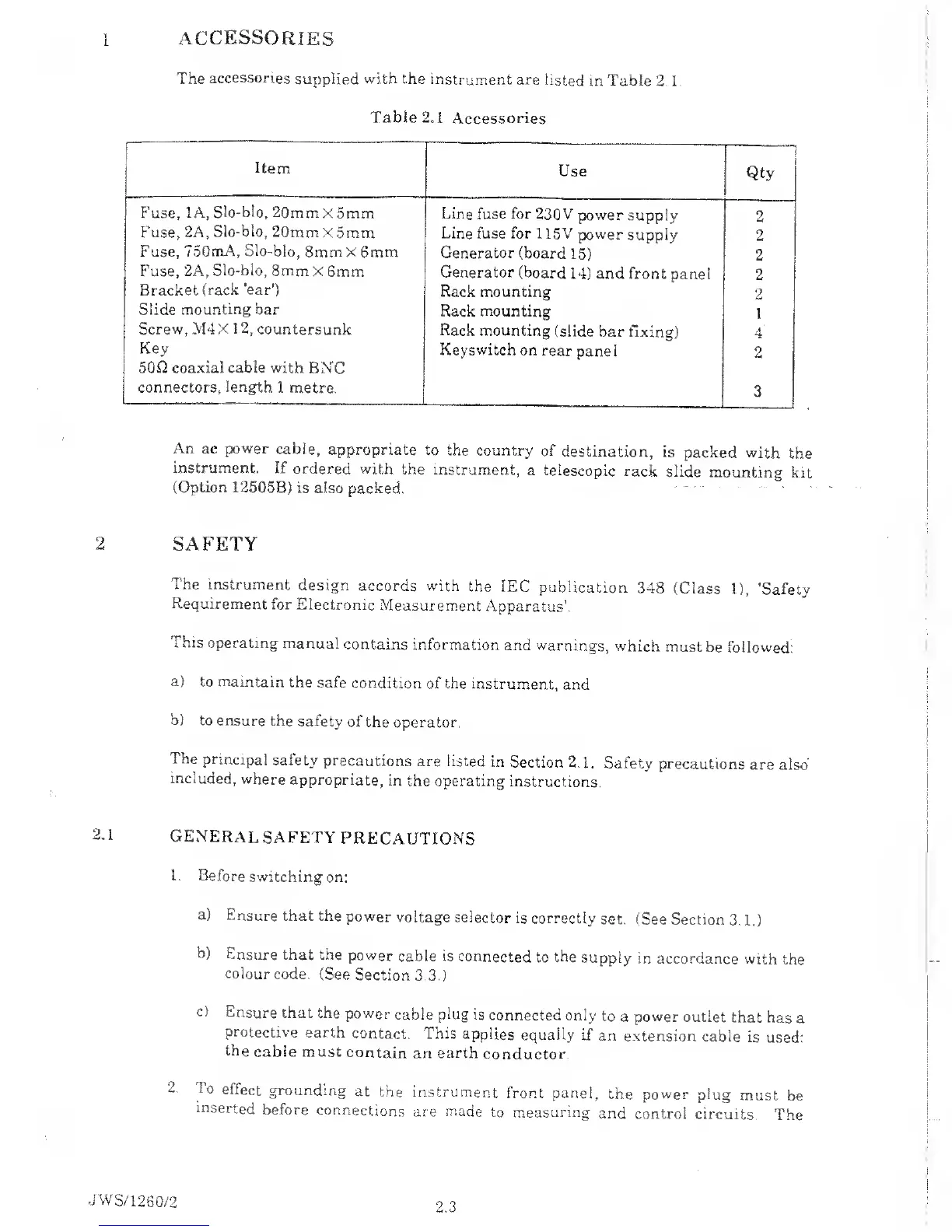 Solartron 1260 - Safety Precautions for Operating the 1260 Analyzer