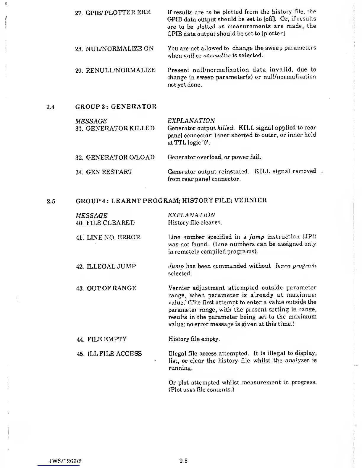 Solartron 1260 - Group 3: Generator; Group 4: Learnt Program; History File; Vernier
