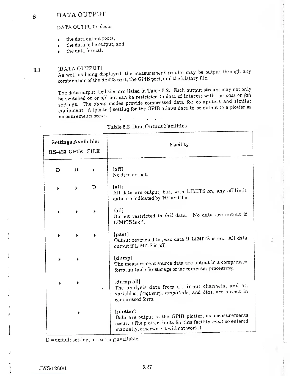 Solartron 1260 - Data Output