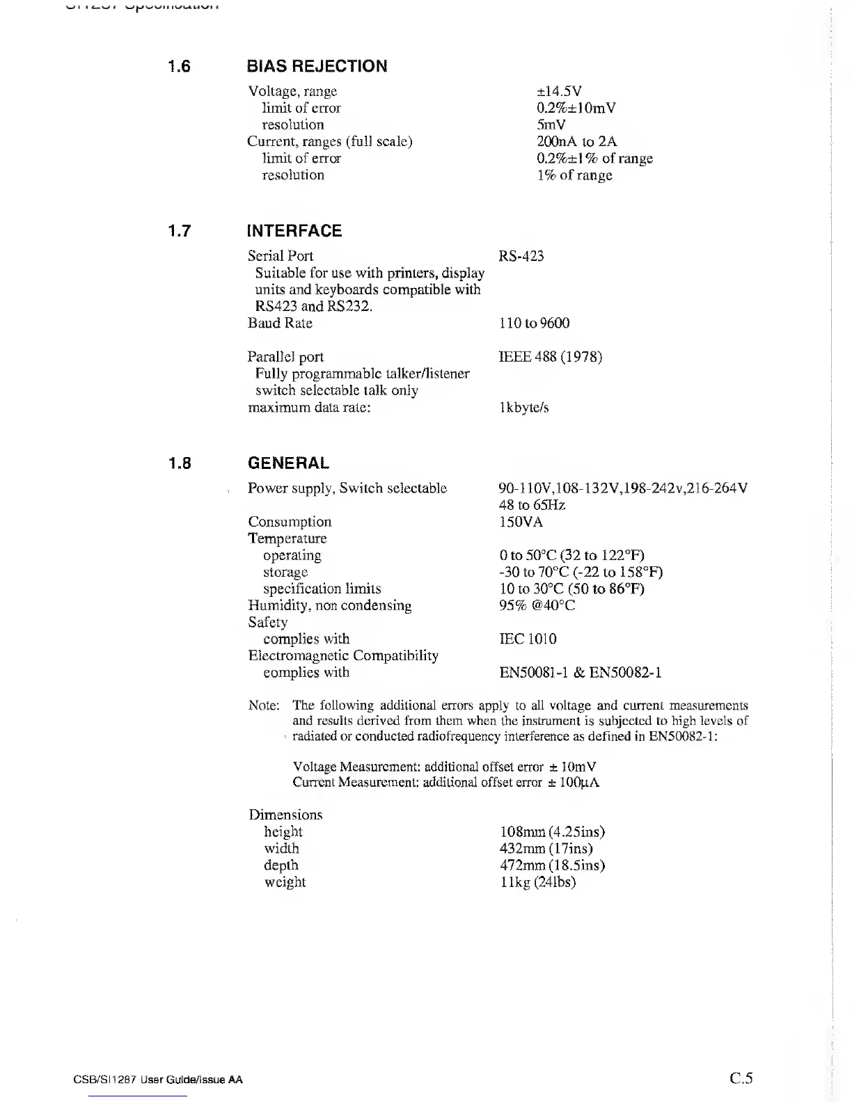 or conducted radiofrequency interference as defined in EN50082-1: