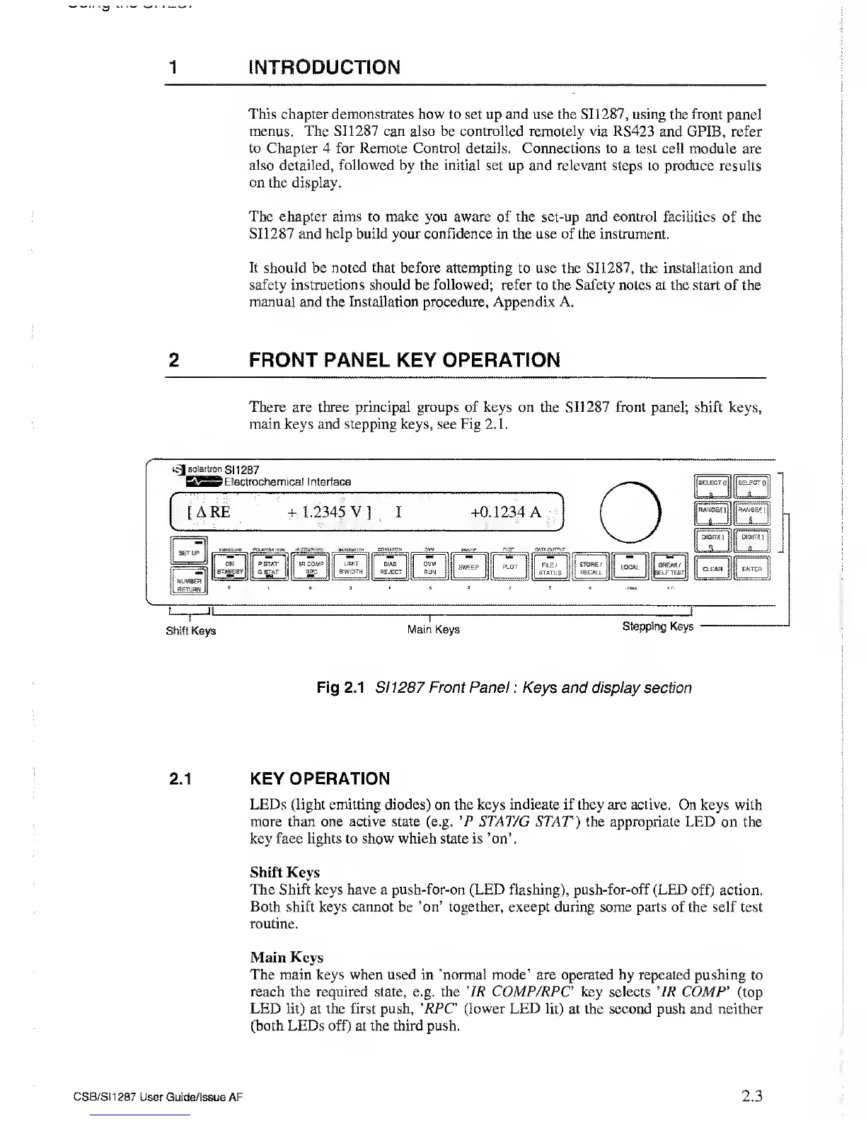Fig 2.1 S1 1287 Front Panel : Keys and display section