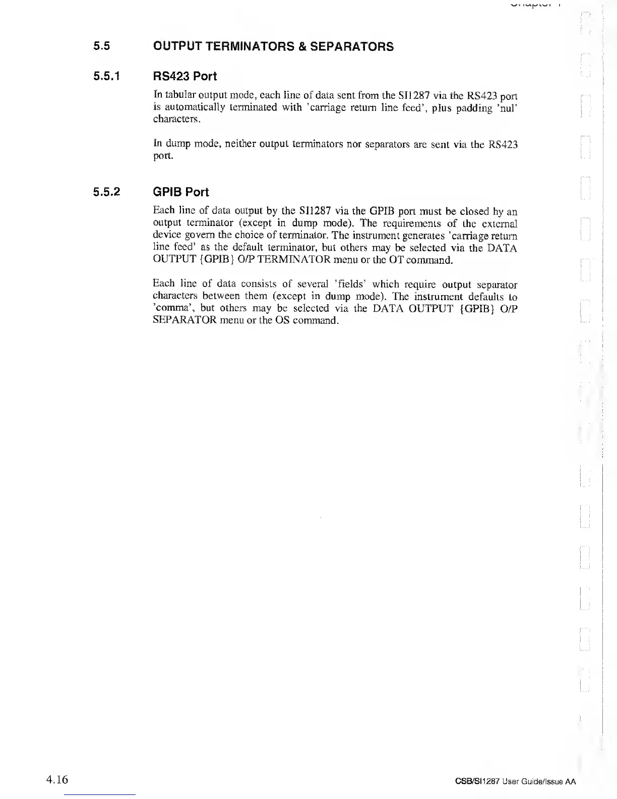 Solartron 1287 - Output Terminators; Separators; GPIB Port