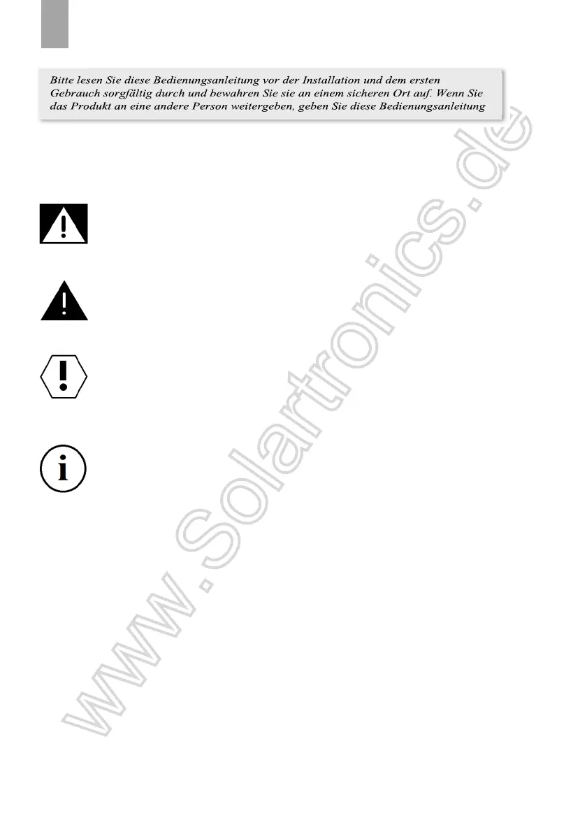 Nichtbeachtung kann zu Materialschäden führen und die Funktion des Produktes