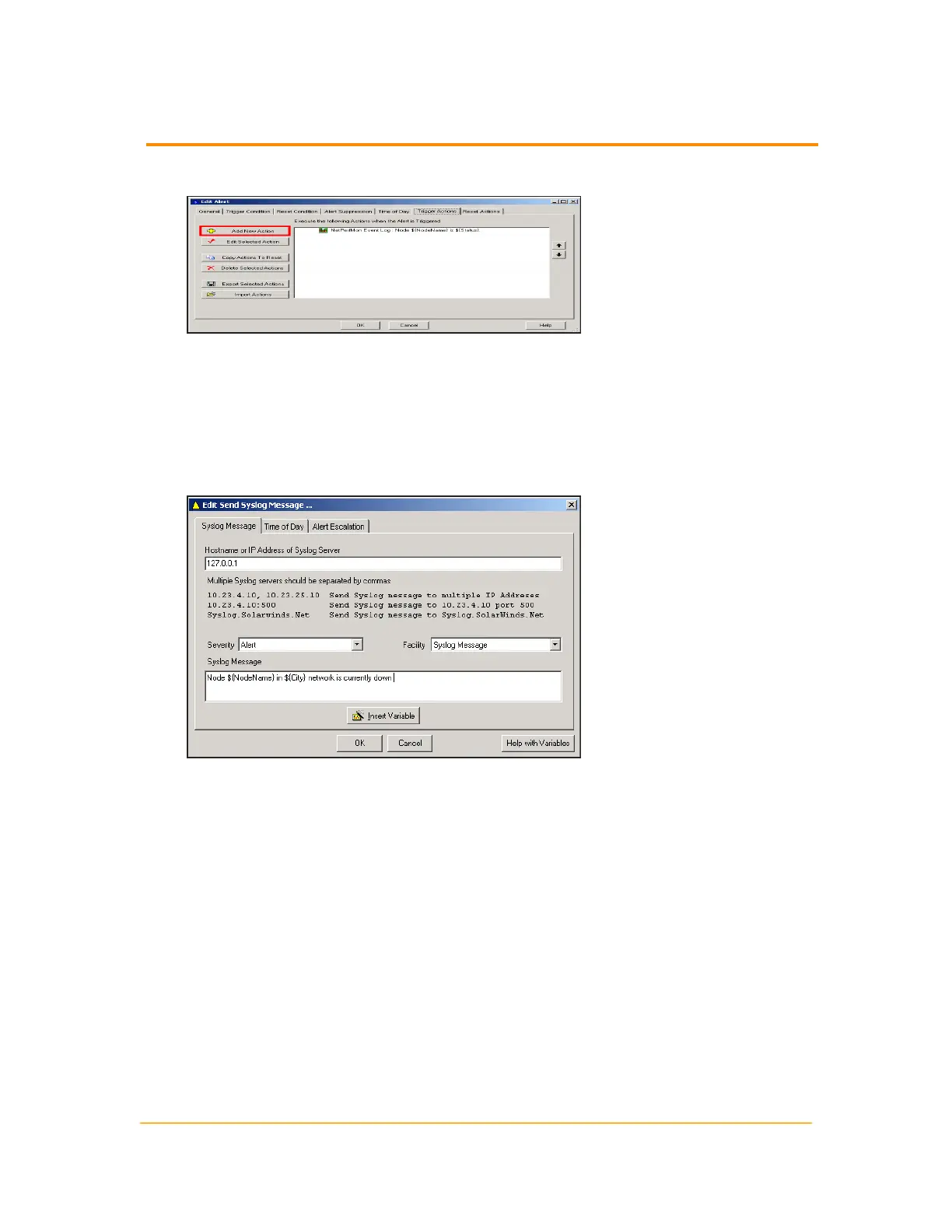 Note: The ${variable} syntax is required for SolarWinds NPM variables.