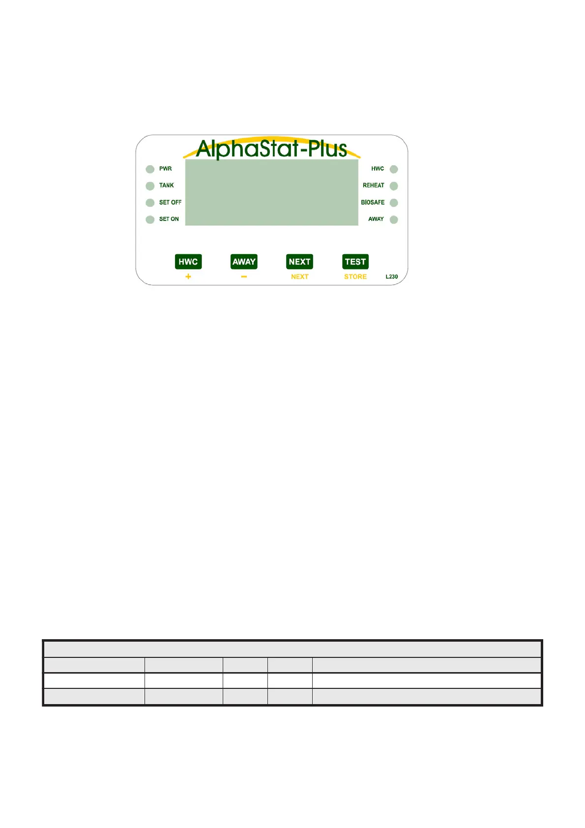 AlphaStat-Plus Programming Table for Adjustable Values.