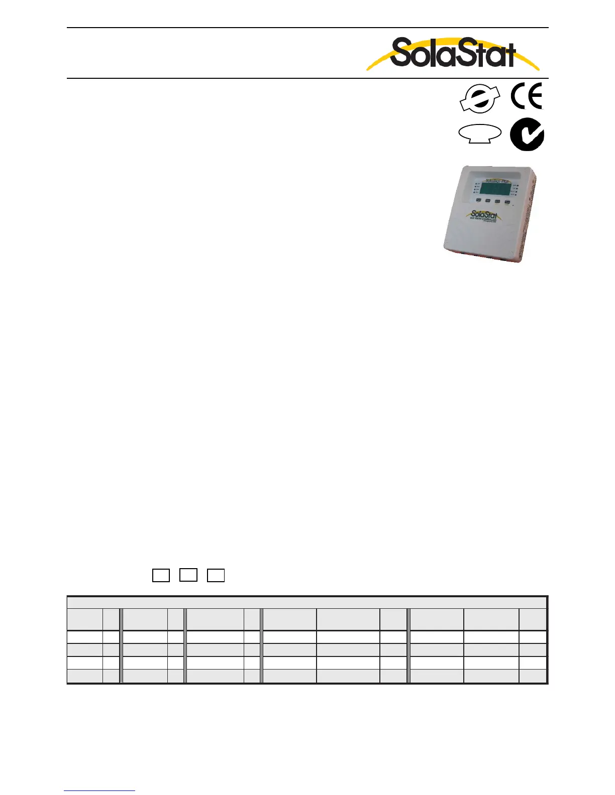 SolaStat-Plus - - - - Adjustable Value Specify adjustable values as required.