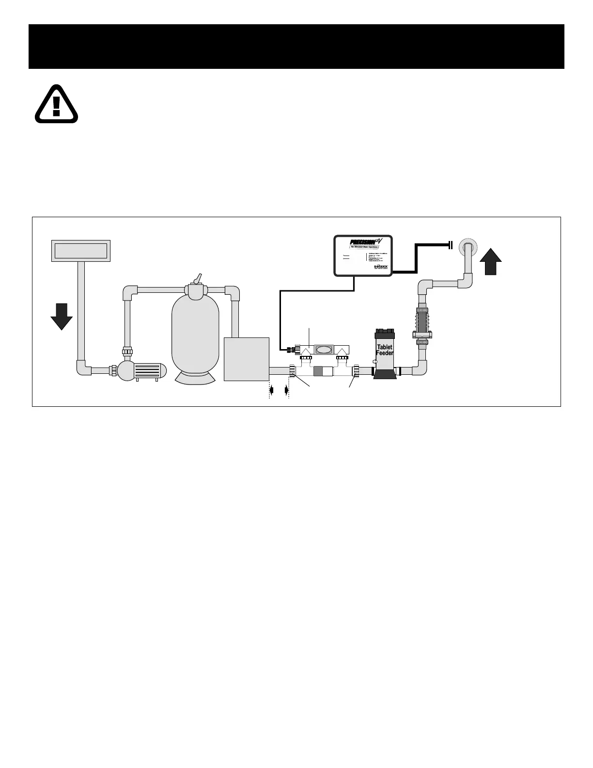Install manifold downstream of the heater and before chlorine tablet feeder. If space allows, install