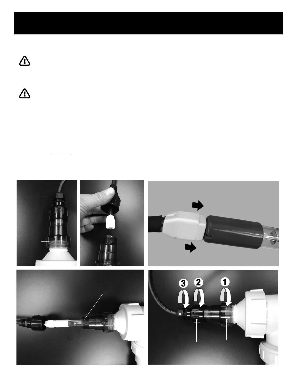 C. Plug the 4 prong plug into the end of the UV lamp. If lamp is not fully plugged in, damage to the unit