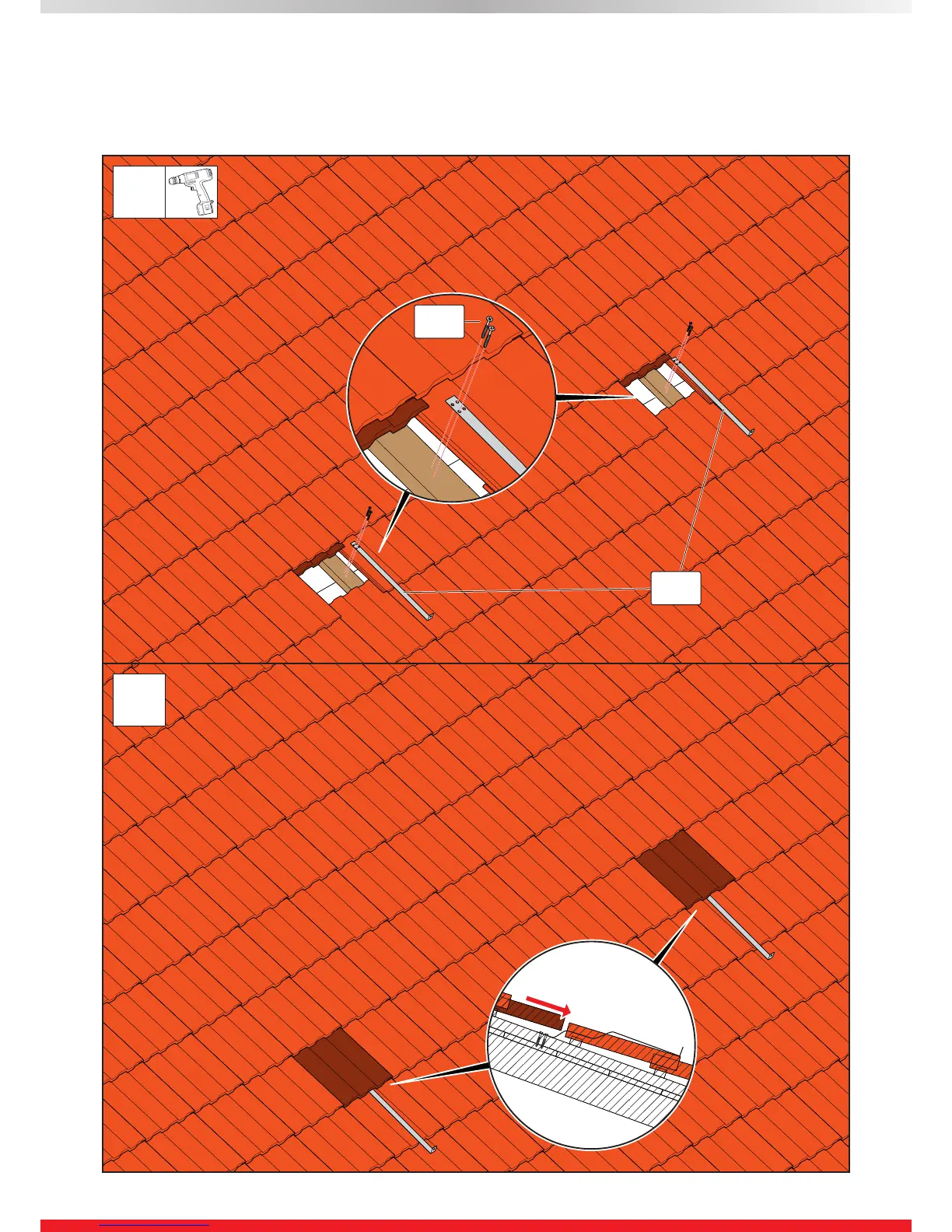 Montage sur toit incliné / Montaje sobre tejado / Montaggio sul tetto inclanato