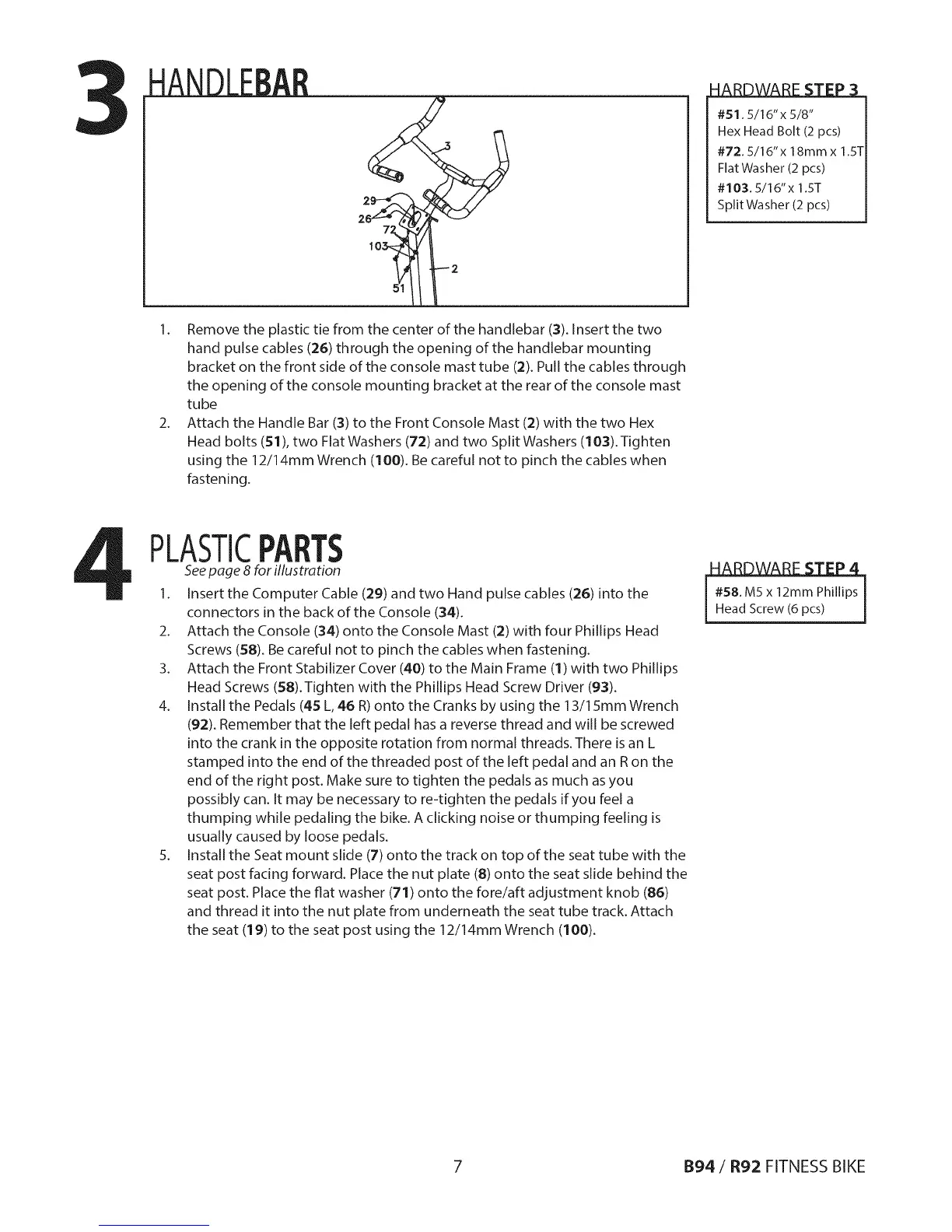 (92). Remember that the left pedal has a reverse thread and will be screwed