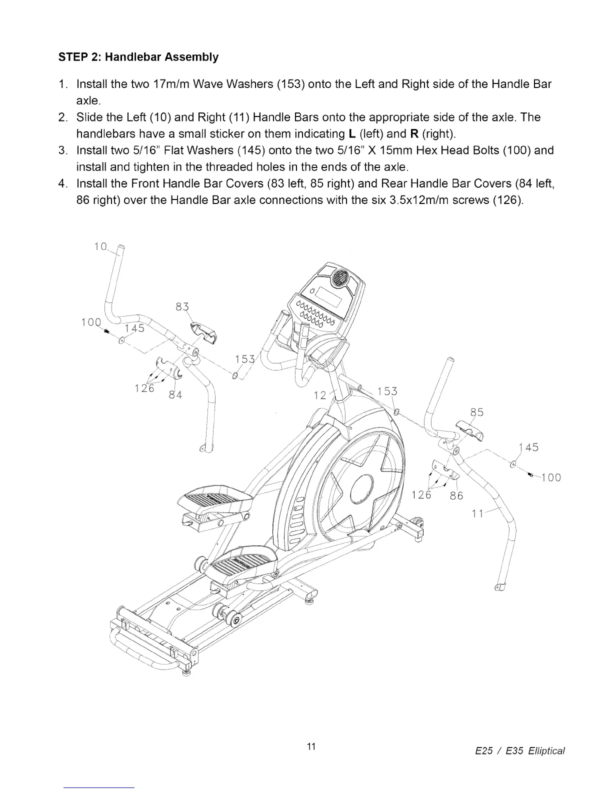 1. Install the two 17m/m Wave Washers (153) onto the Left and Right side of the Handle Bar