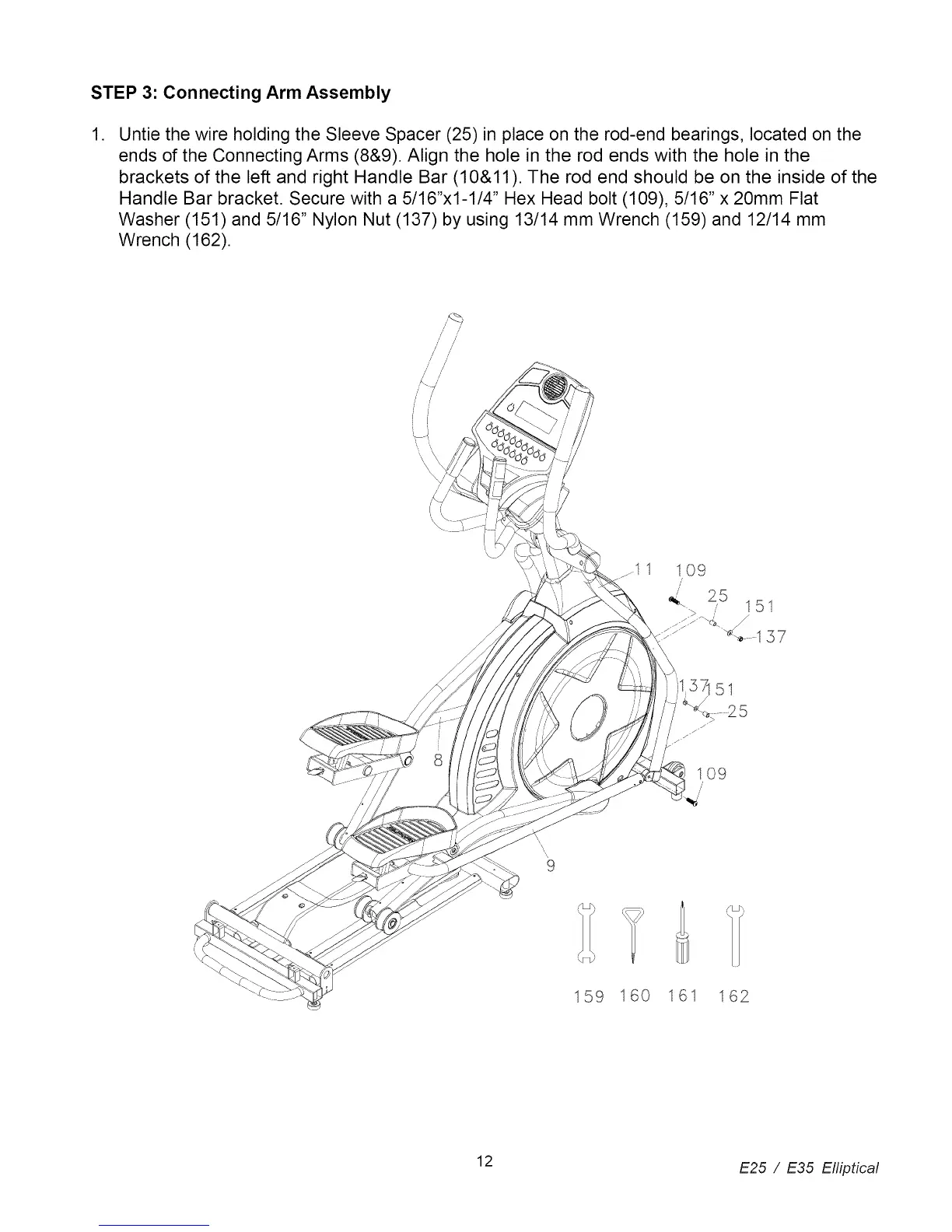 ends of the Connecting Arms (8&9). Align the hole in the rod ends with the hole in the
