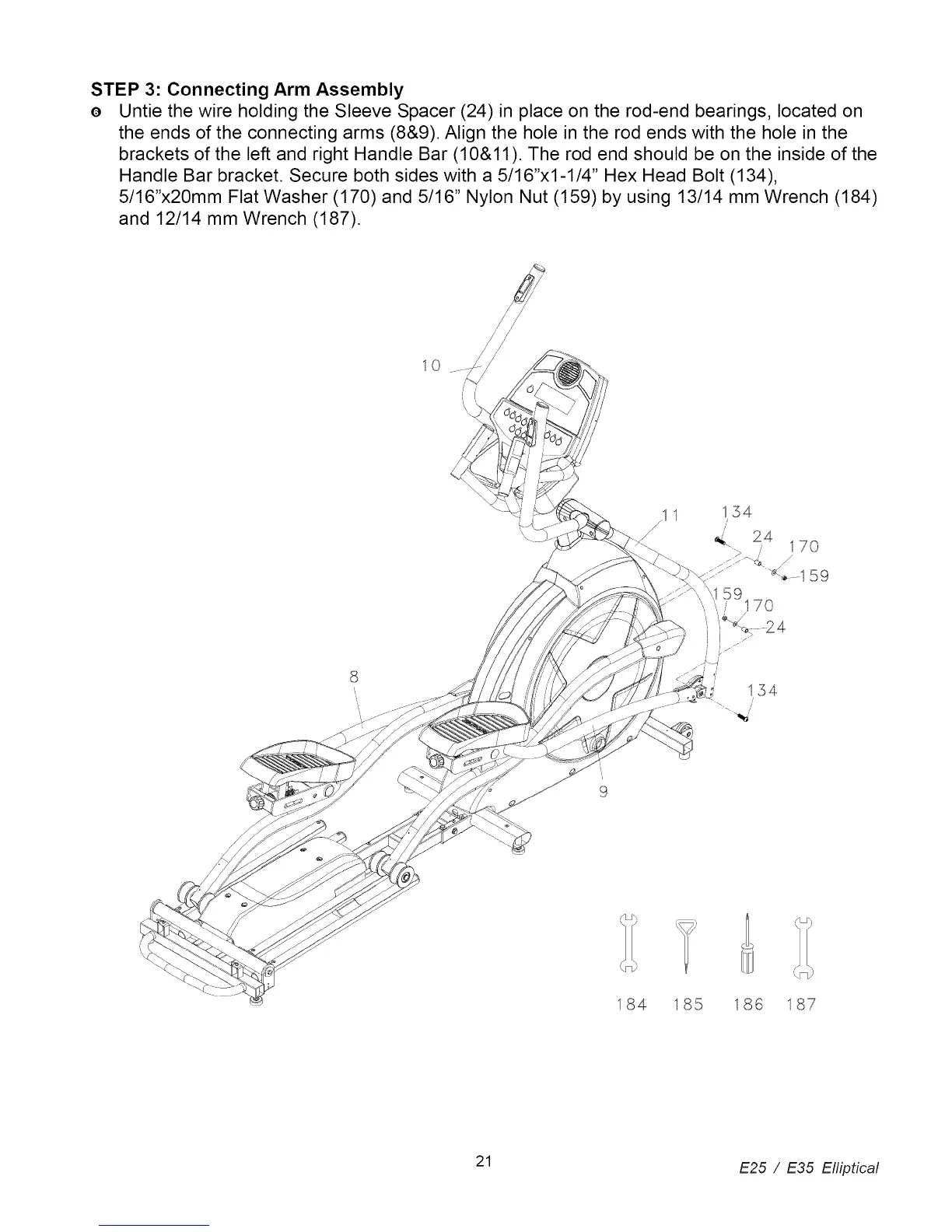 the ends of the connecting arms (8&9). Align the hole in the rod ends with the hole in the