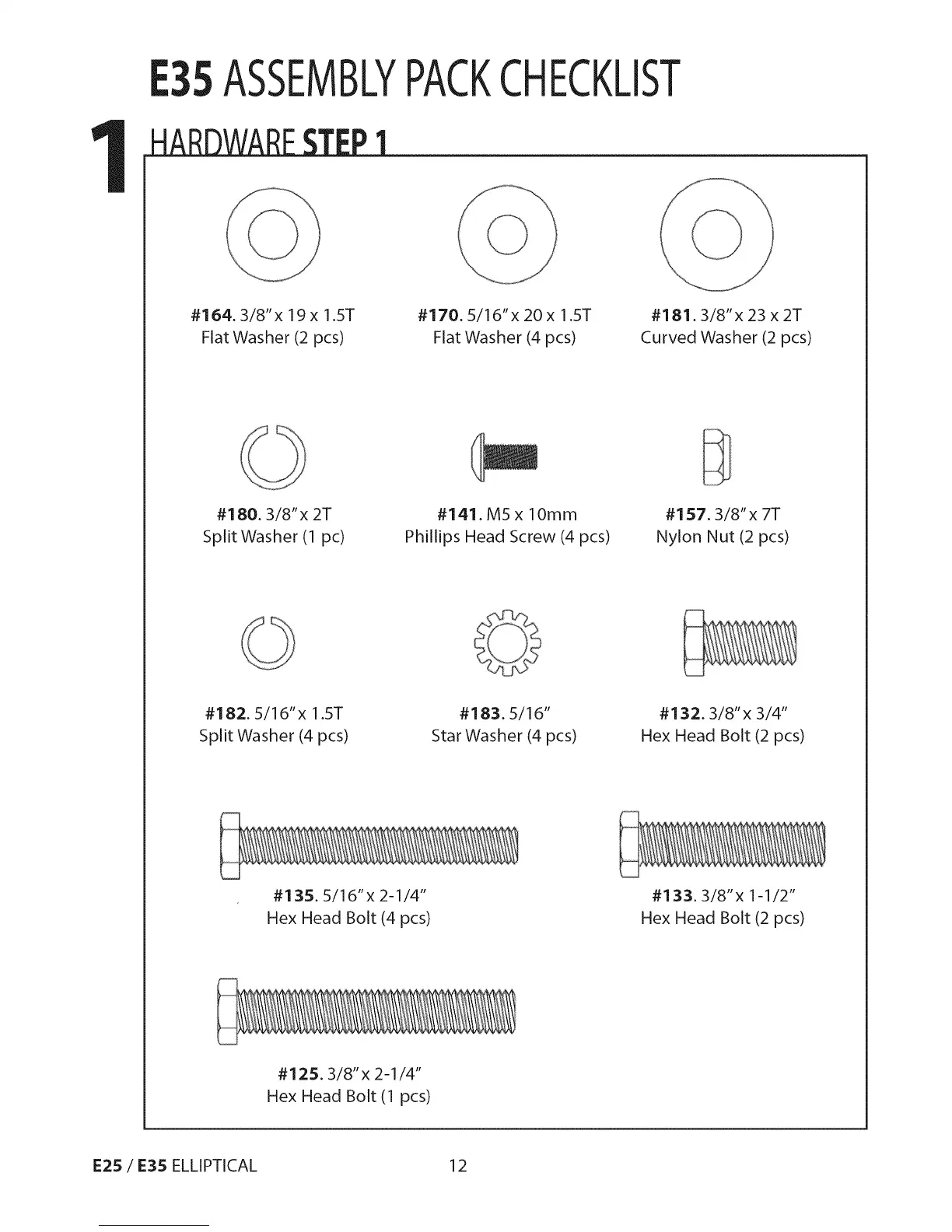 SOLE E35 - E35 Assembly Pack Checklist
