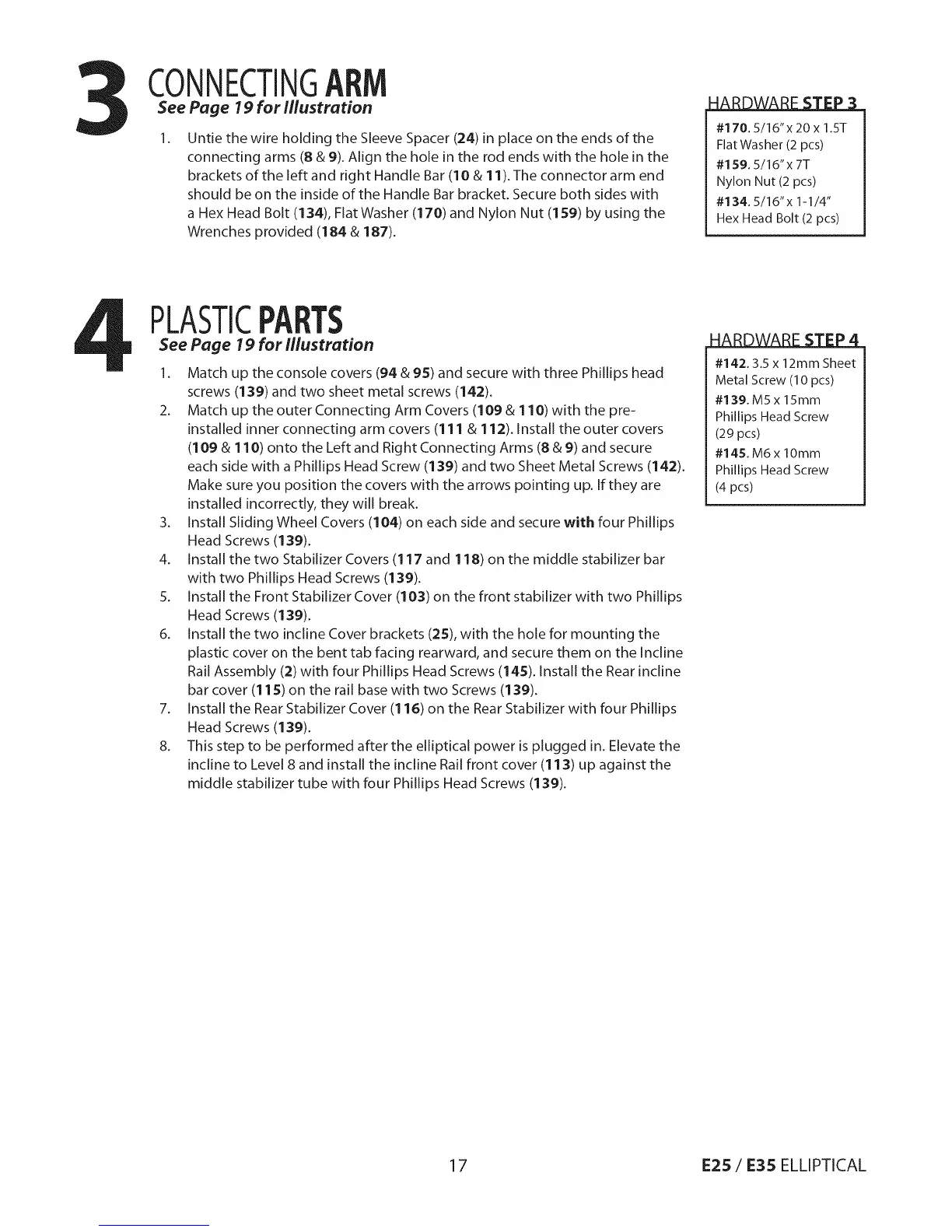 Rail Assembly (2) with four Phillips Head Screws (145). Install the Rear incline