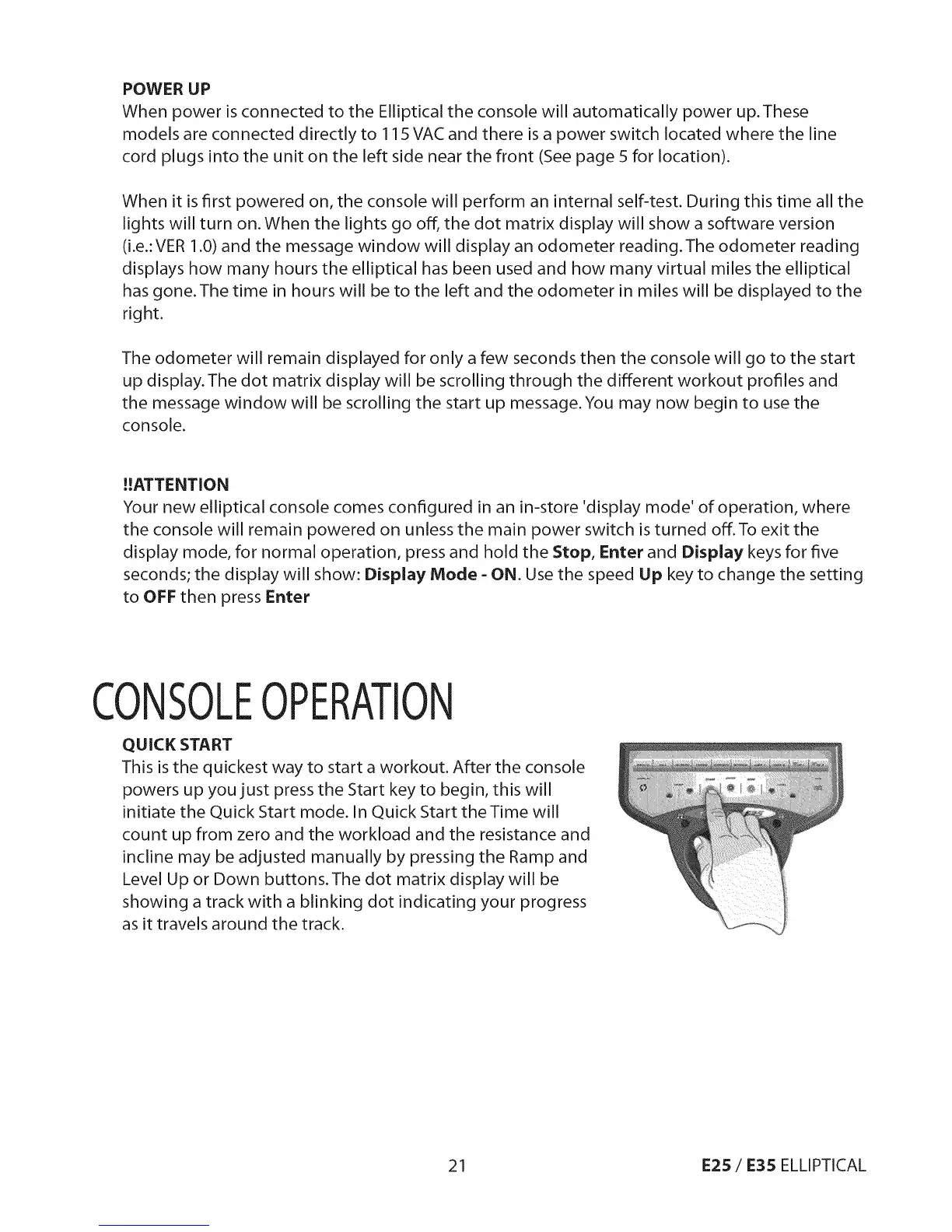 Yournewelliptical consolecomesconfigured inan in-store'displaymode'of operation,where
