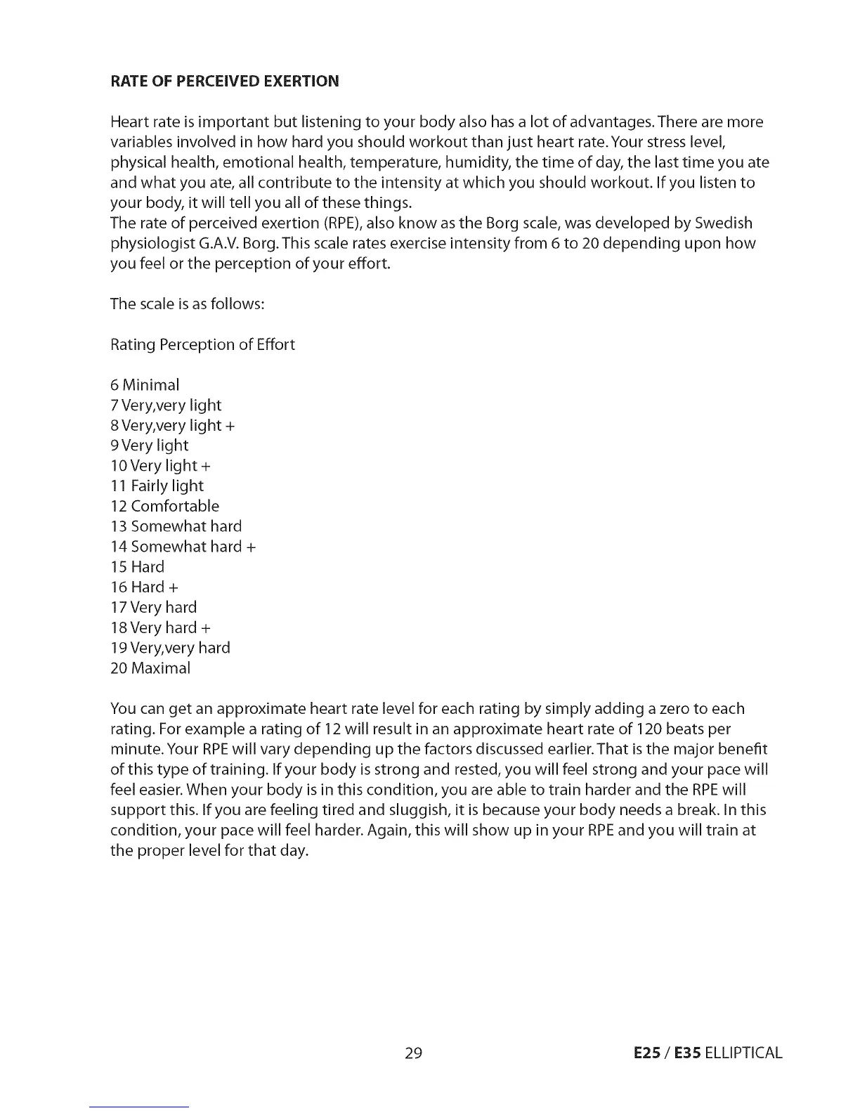 physiologist G.A.V. Borg.This scale rates exercise intensity from 6 to 20 depending upon how