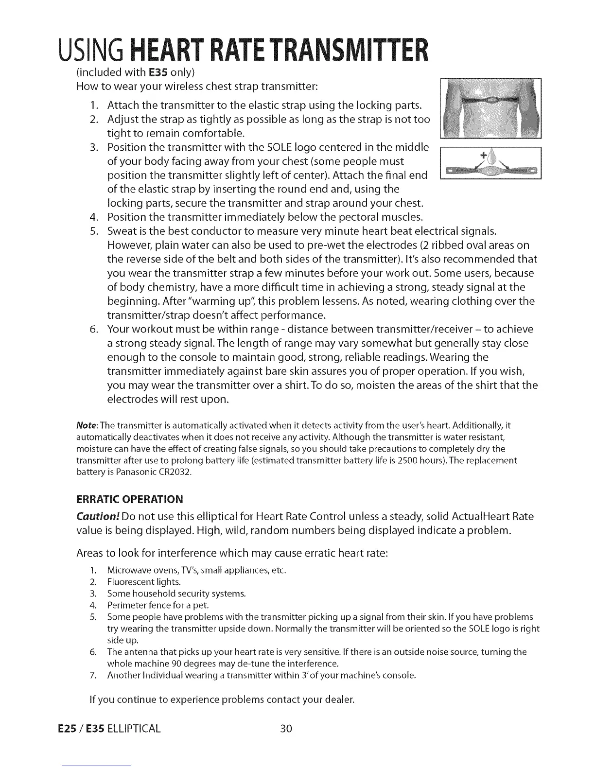 Caution! Do not use this elliptical for Heart Rate Control unless a steady, solid ActualHeart Rate
