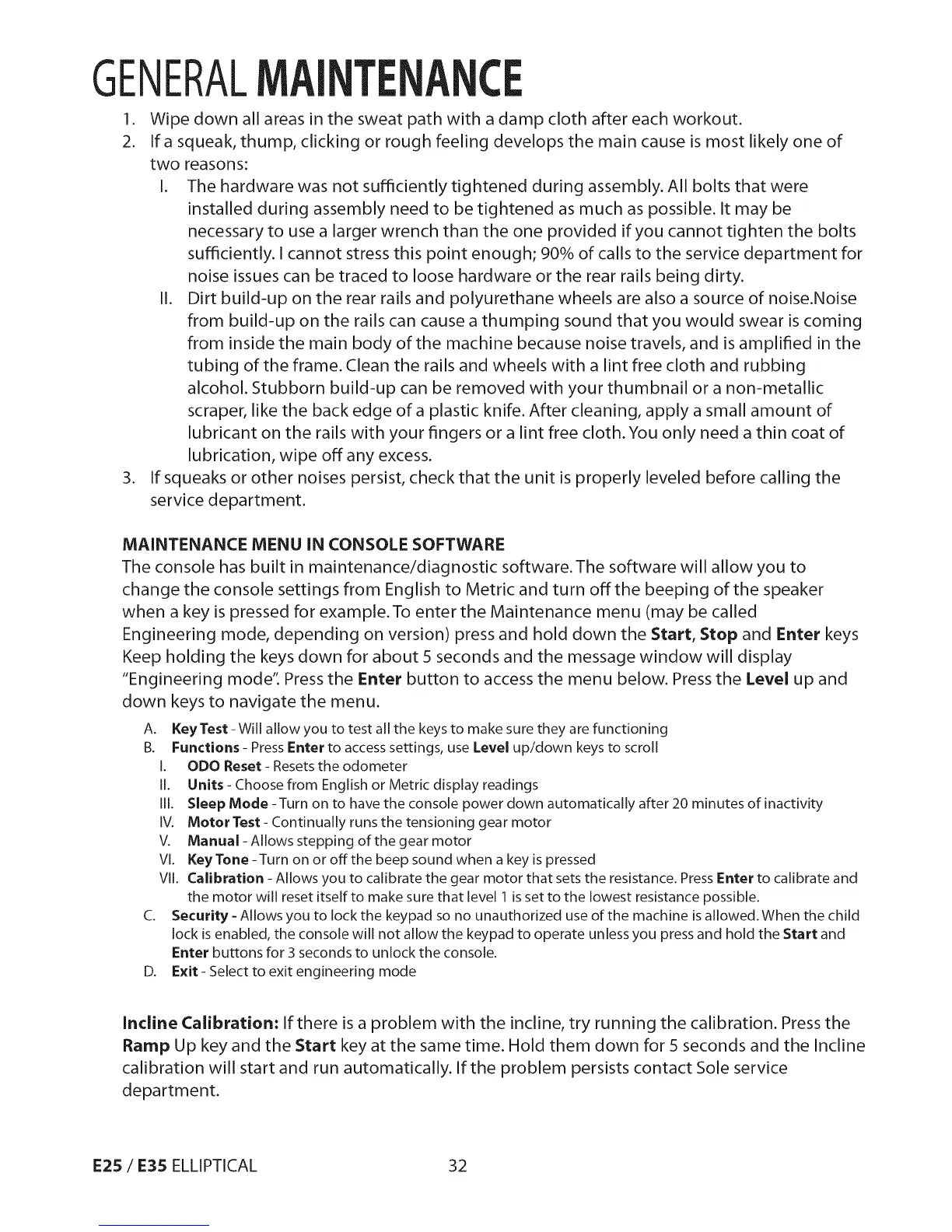 Incline Calibration: If there is a problem with the incline, try running the calibration. Press the