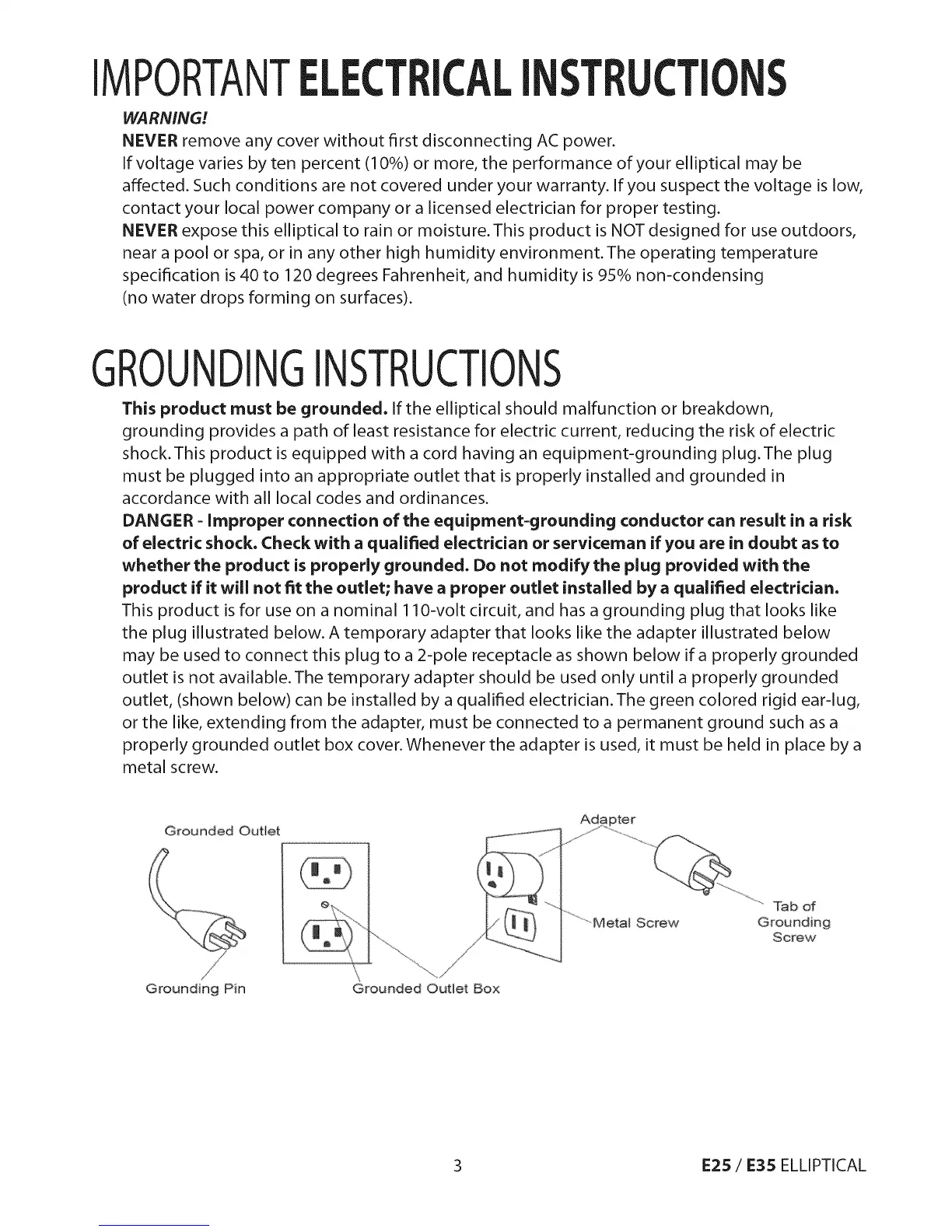This product must be grounded. If the elliptical should malfunction or breakdown,