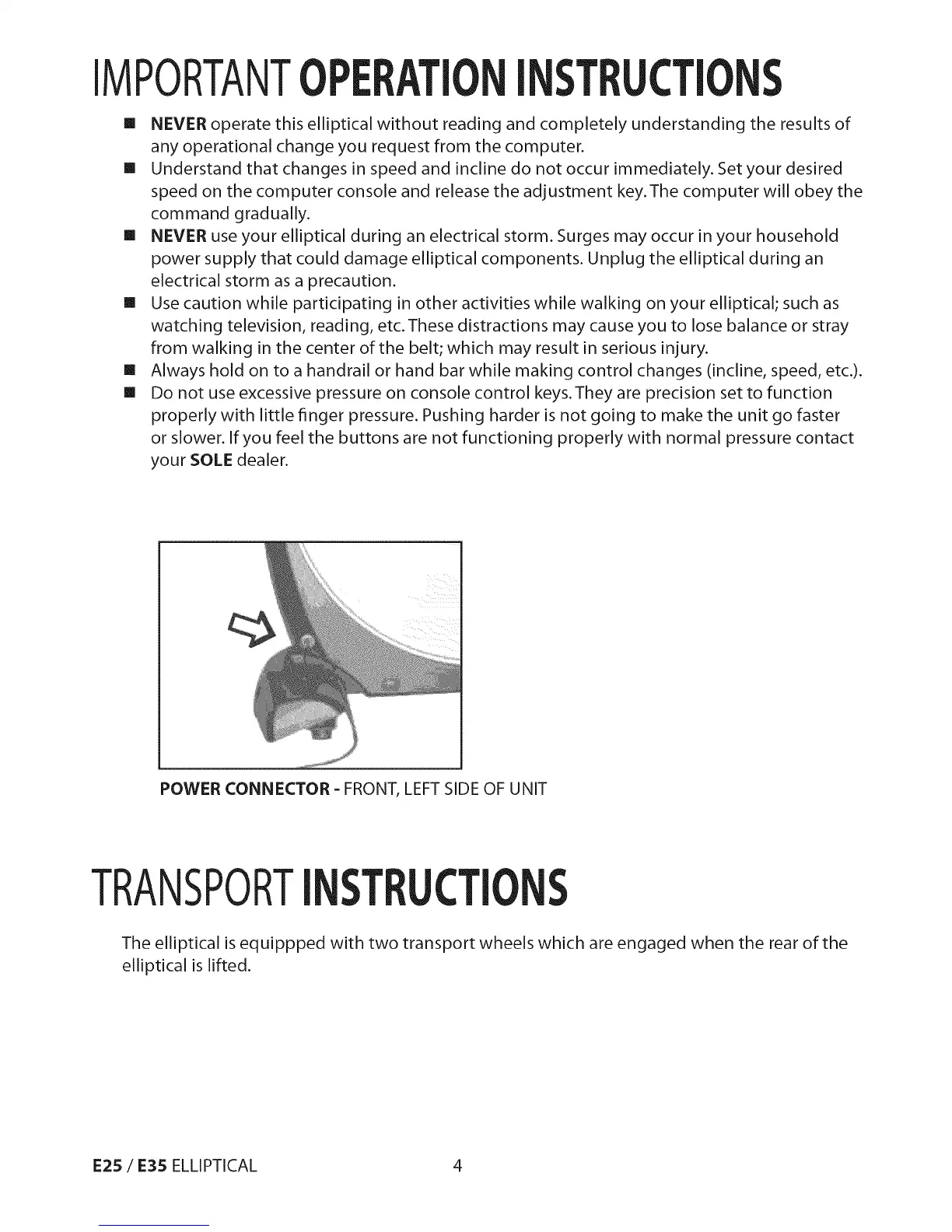 [] NEVER use your elliptical during an electrical storm. Surges may occur in your household