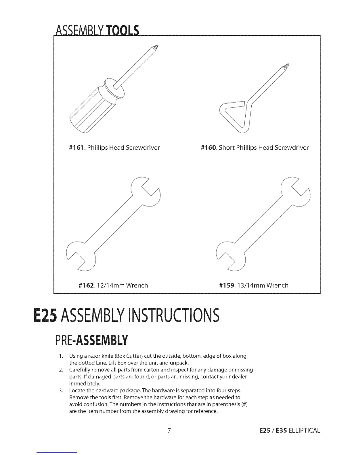 parts. If damaged parts are found, or parts are missing, contact your dealer