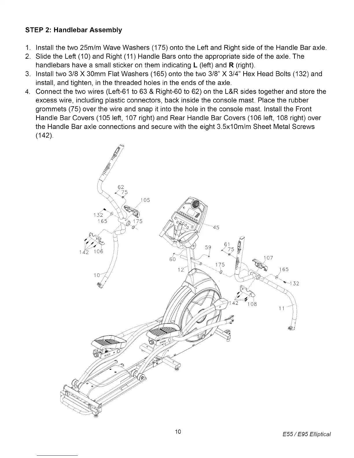 2. Slide the Left (10) and Right (11) Handle Bars onto the appropriate side of the axle. The