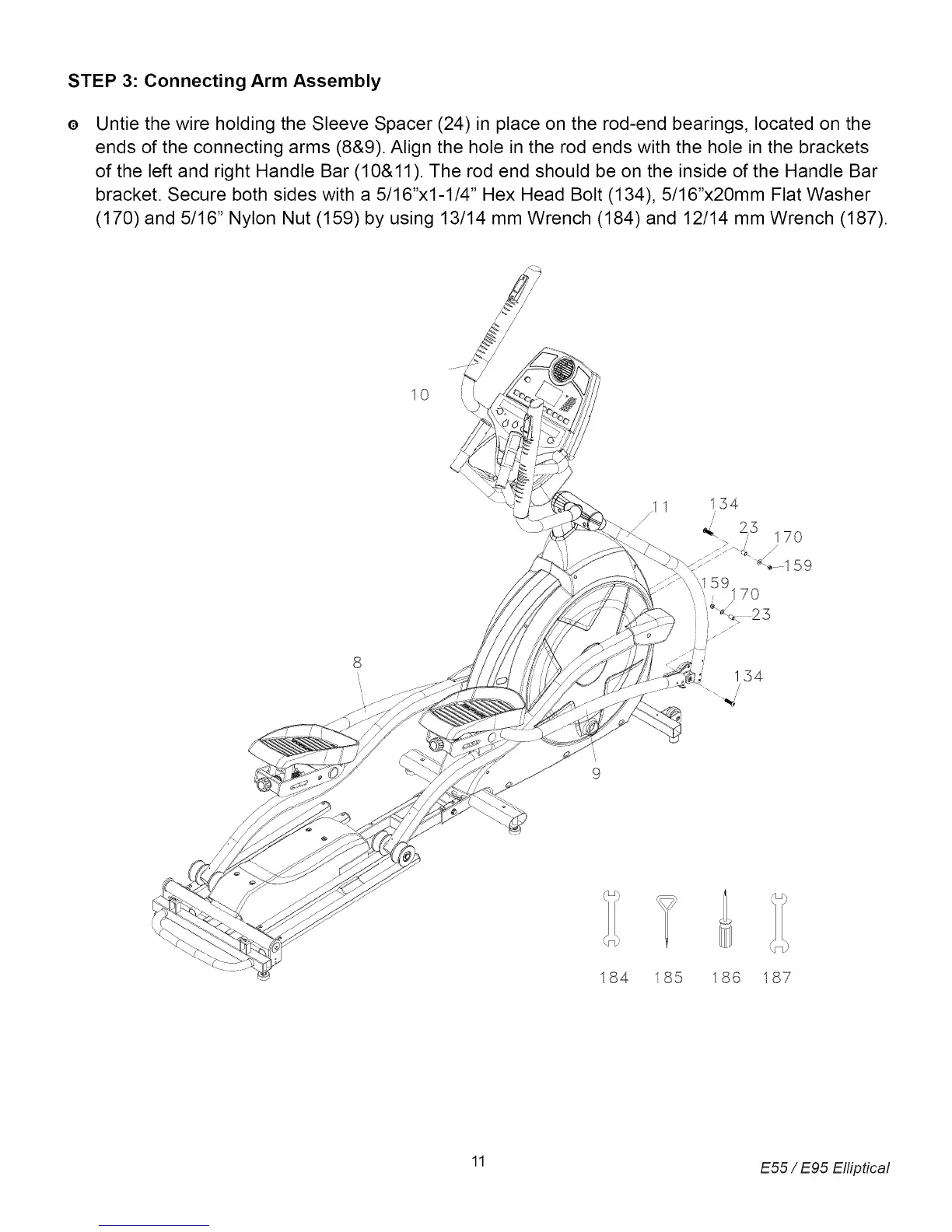 ends of the connecting arms (8&9). Align the hole in the rod ends with the hole in the brackets