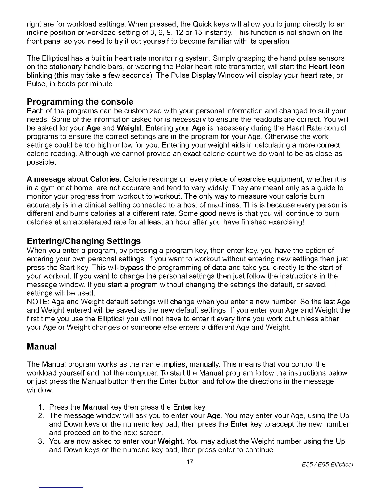 workload yourself and not the computer. To start the Manual program follow the instructions below