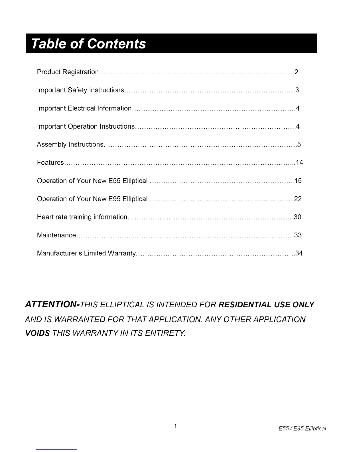 ATTENTION-THIS ELLIPTICAL IS INTENDED FOR RESIDENTIAL USE ONLY