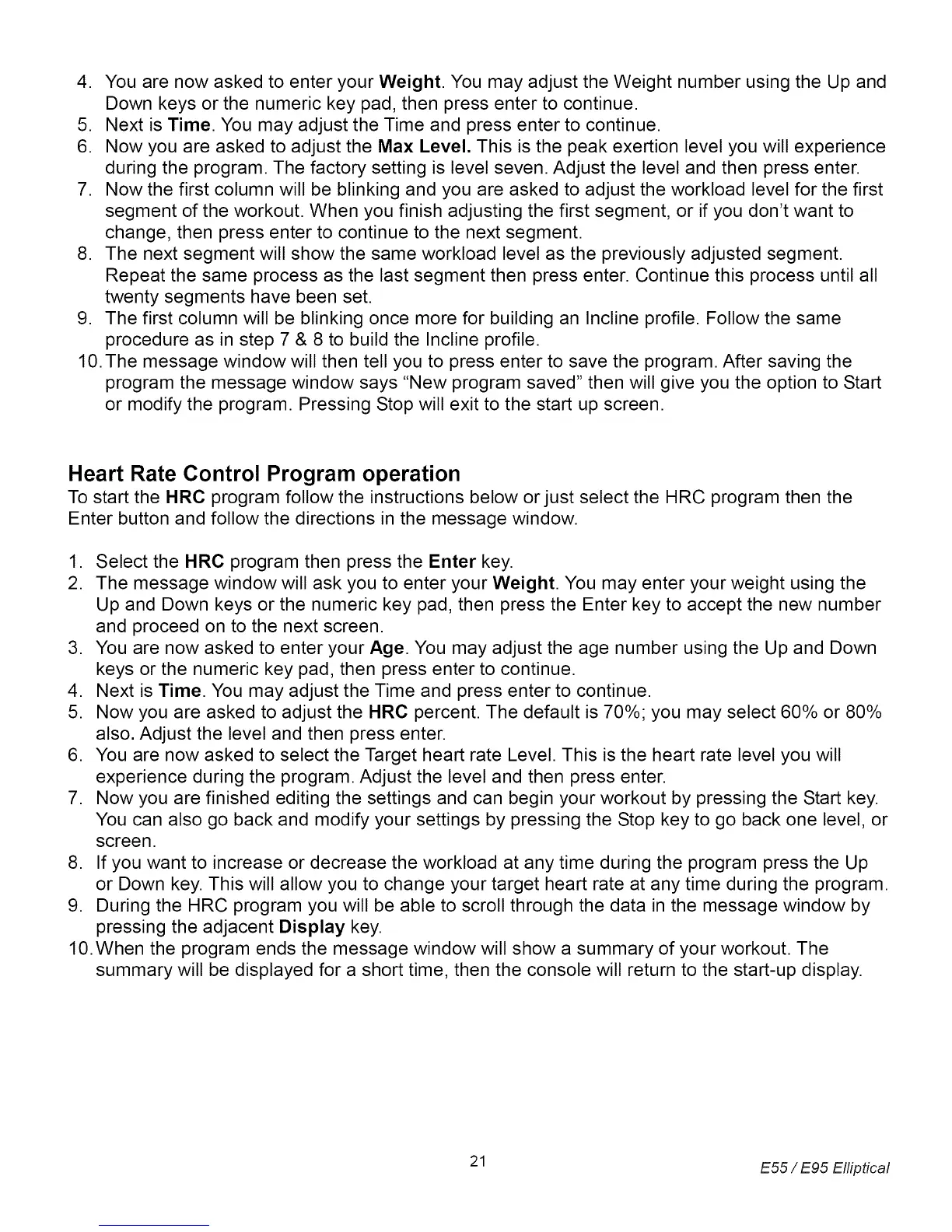 or Down key. This will allow you to change your target heart rate at any time during the program.