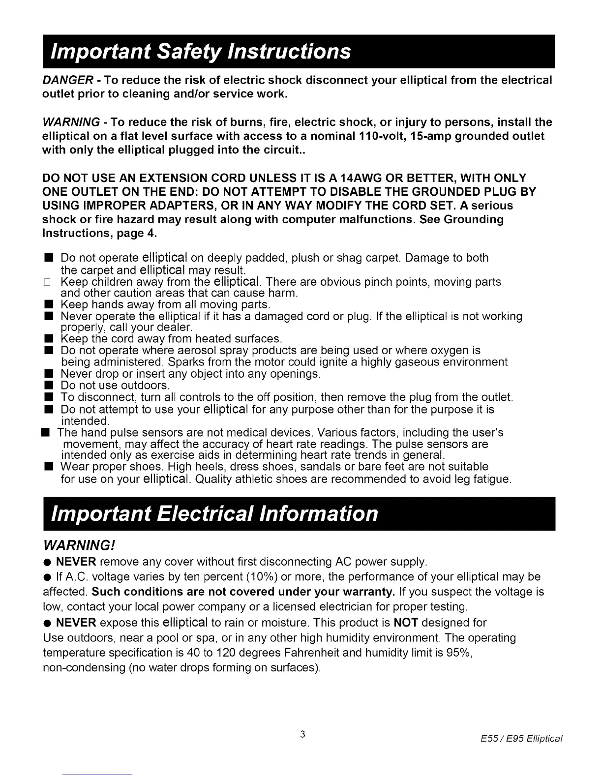 • If A.C. voltage varies by ten percent (10%) or more, the performance of your elliptical may be