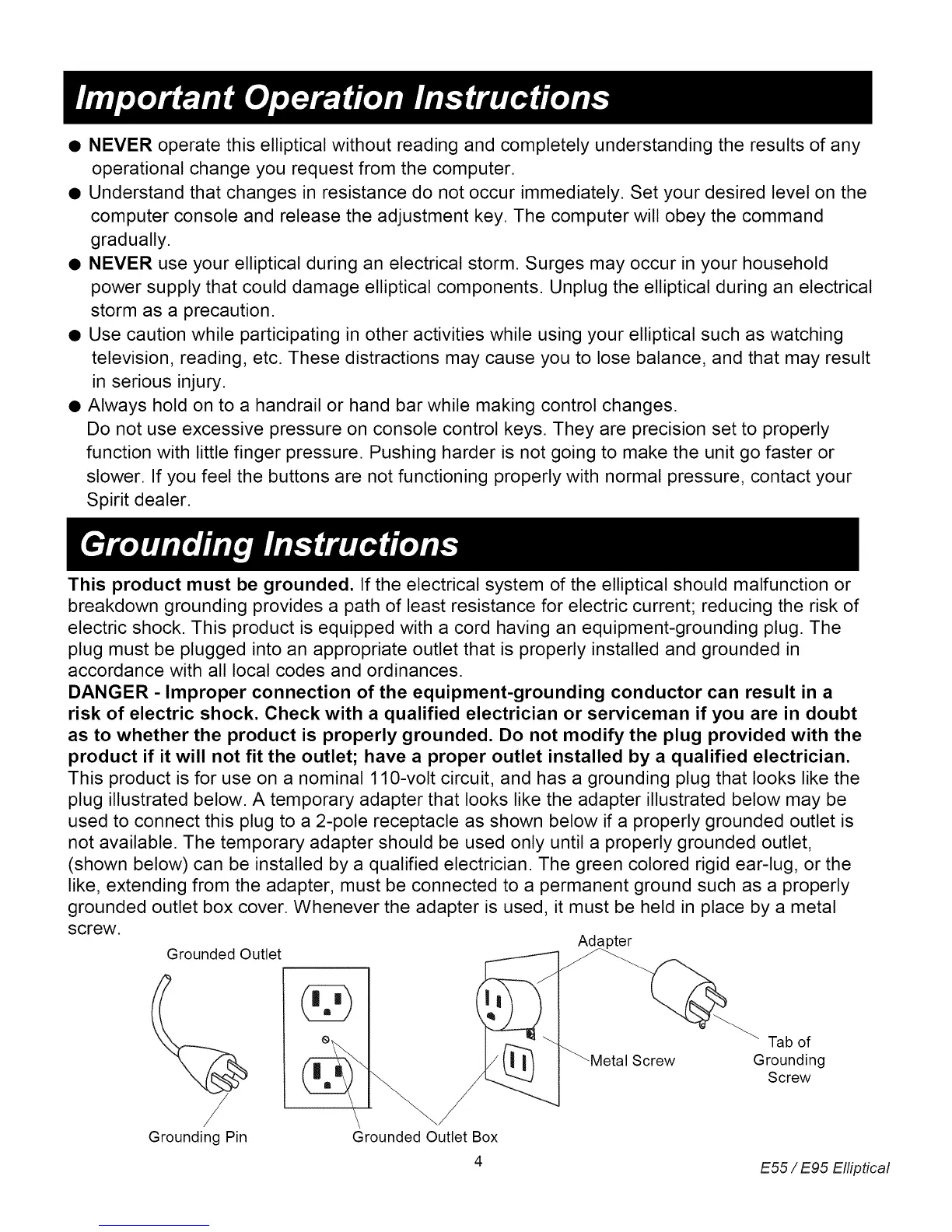 This product must be grounded. If the electrical system of the elliptical should malfunction or