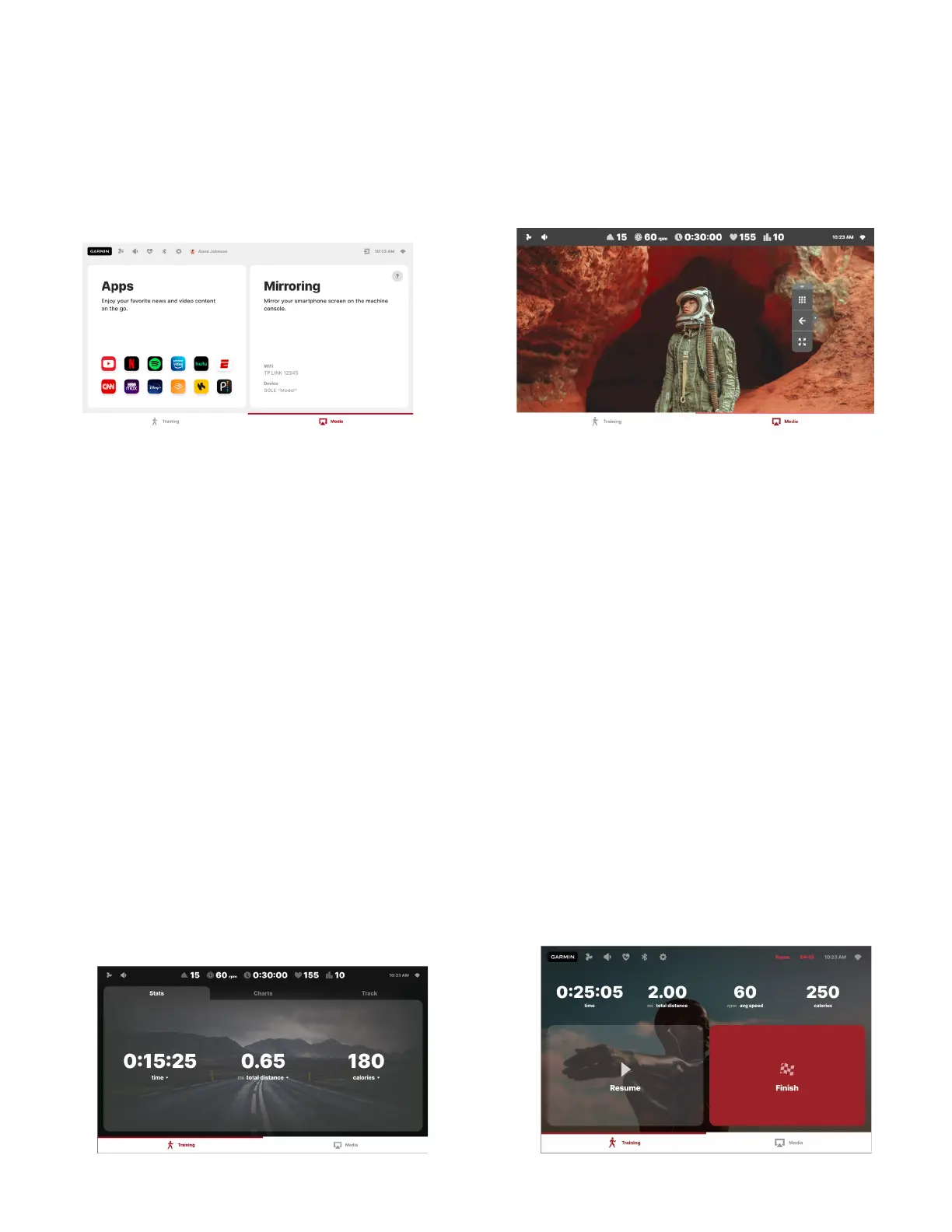 During the workout, switch between Stats, Charts and Track views of the Training section, or go to