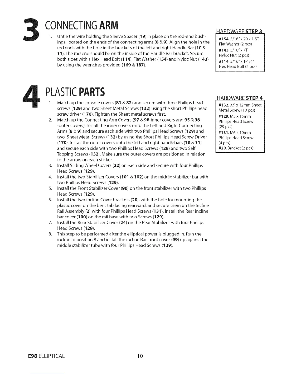 Arms (8 & 9) and secure each side with two Phillips Head Screws (129) and