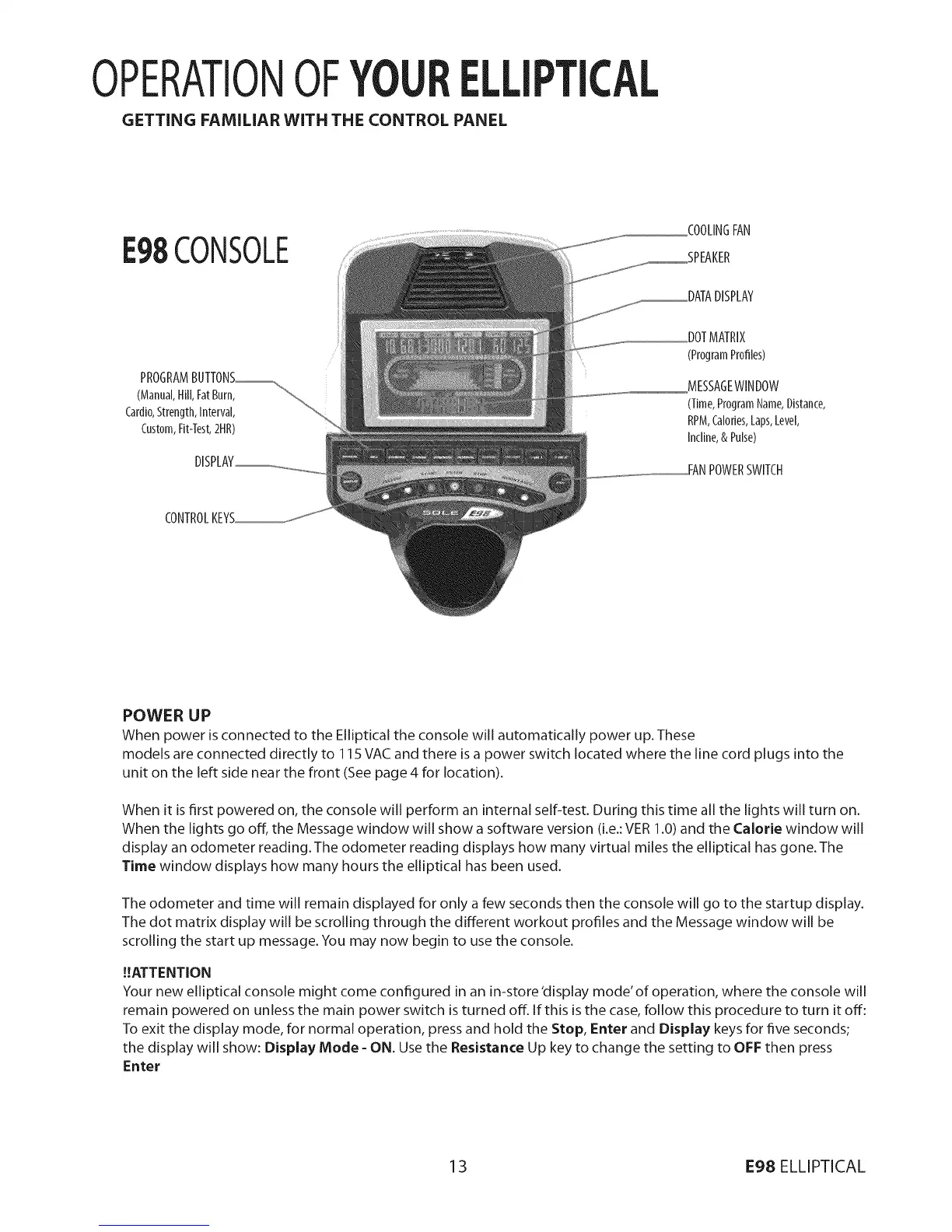 Your new elliptical console might come configured in an in-store 'display mode' of operation, where the console will