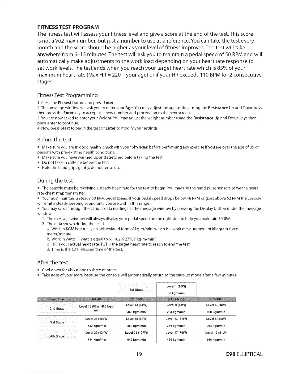 set work levels.The test ends when you reach your target heart rate which is 85% of your