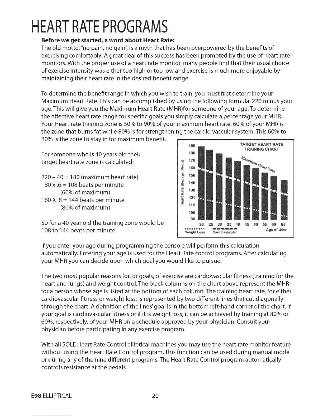 or during any of the nine different programs. The Heart Rate Control program automatically