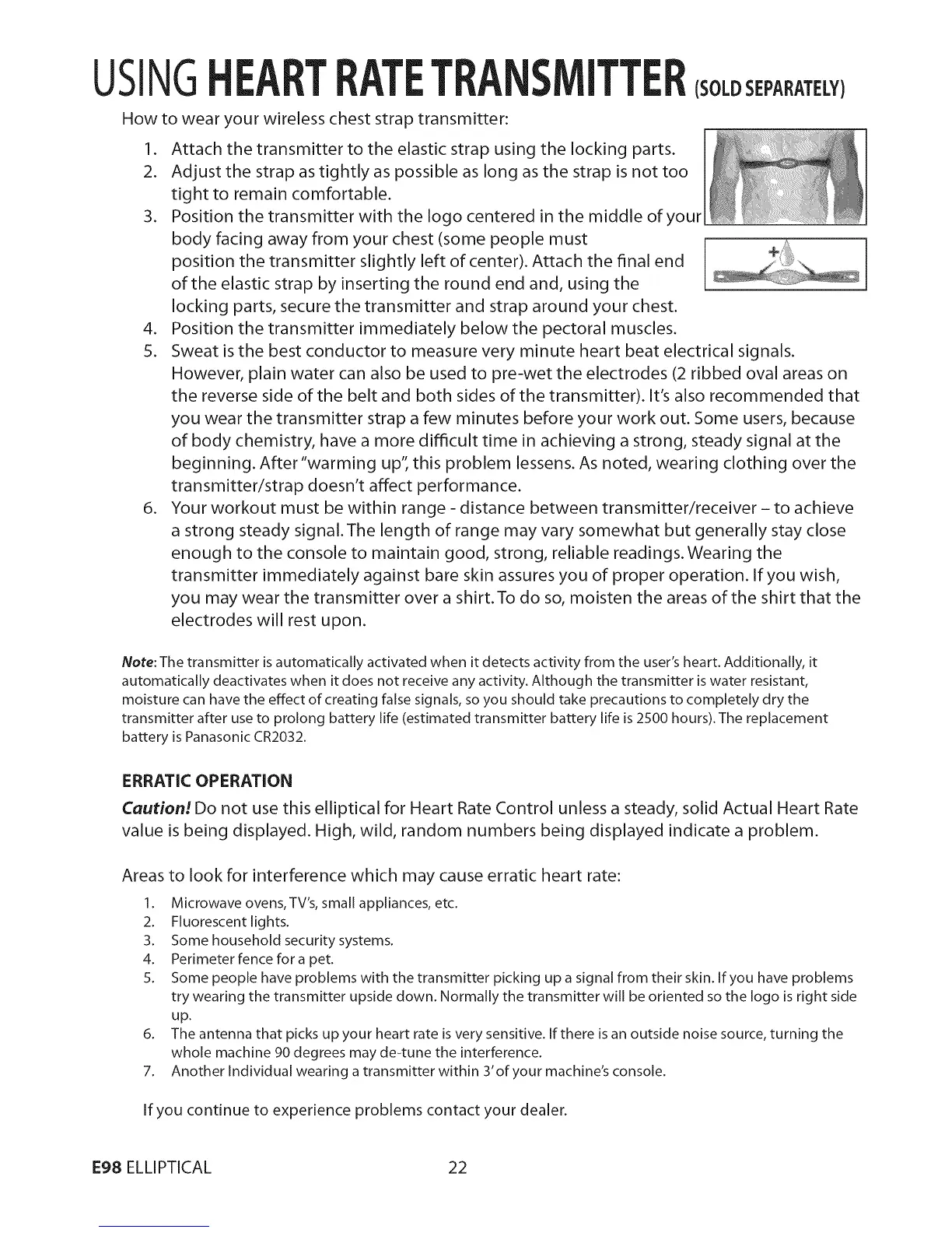 Note: The transmitter is automatically activated when it detects activity from the user's heart. Additionally, it