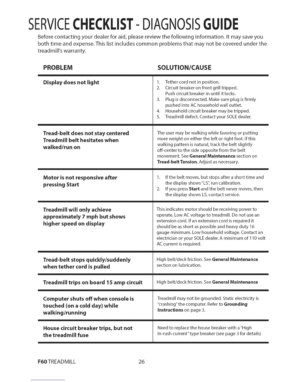 5. Treadmill defect. Contact your SOLE dealer.