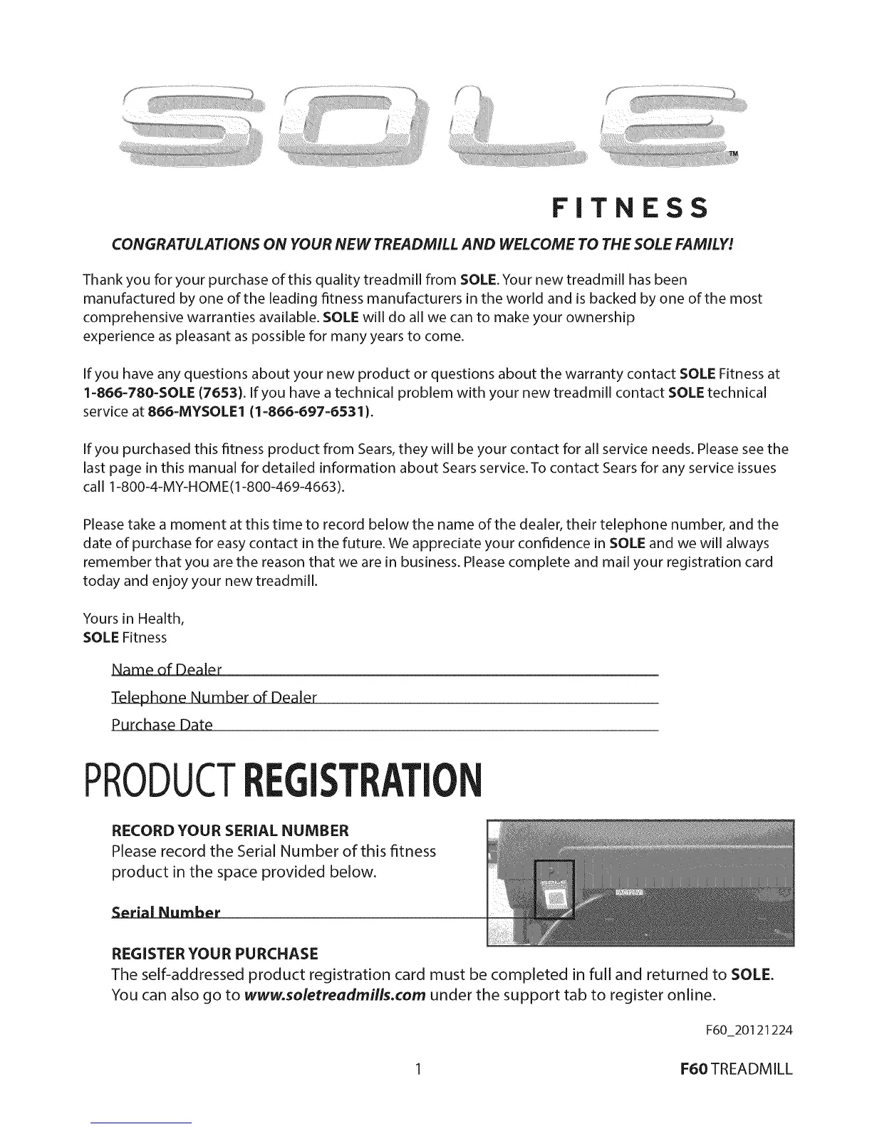 If you have any questions about your new product or questions about the warranty contact SOLE Fitness at