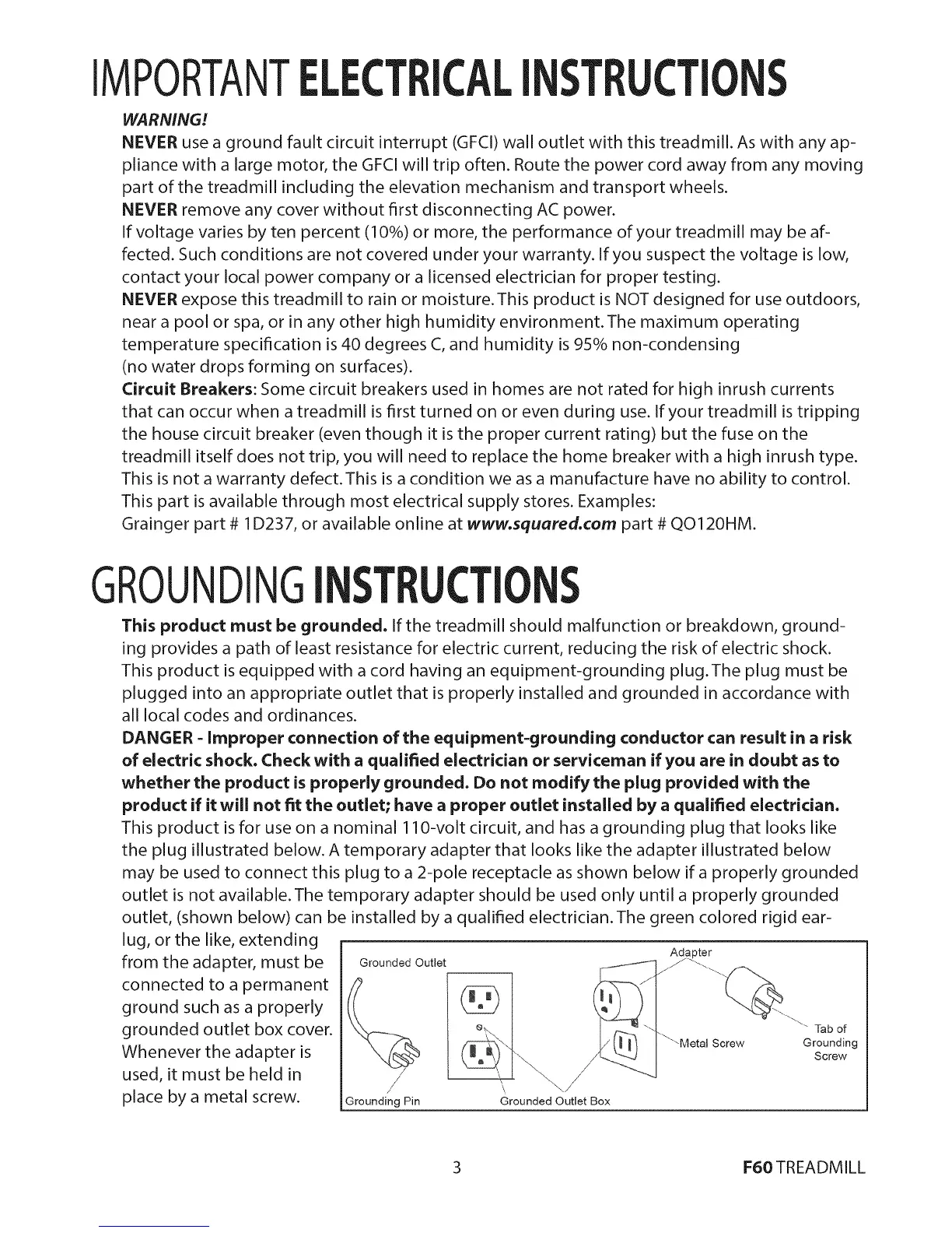 NEVER use a ground fault circuit interrupt (GFCI) wall outlet with this treadmill. As with any ap-