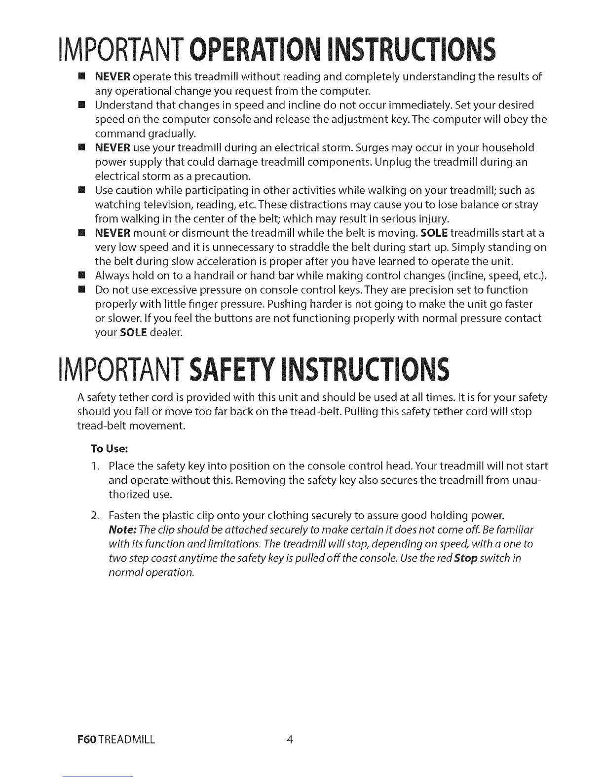 II NEVER mount or dismount the treadmill while the belt is moving. SOLE treadmills start at a