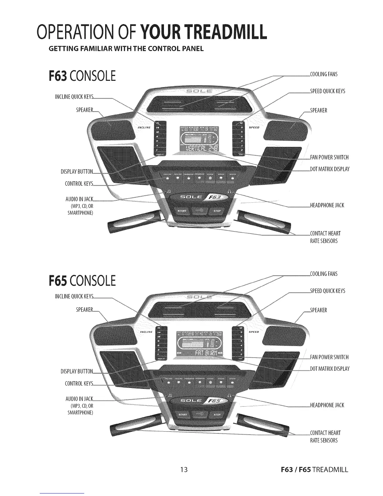 SOLE F63 - Operation of Your Treadmill; Getting Familiar with the Control Panel