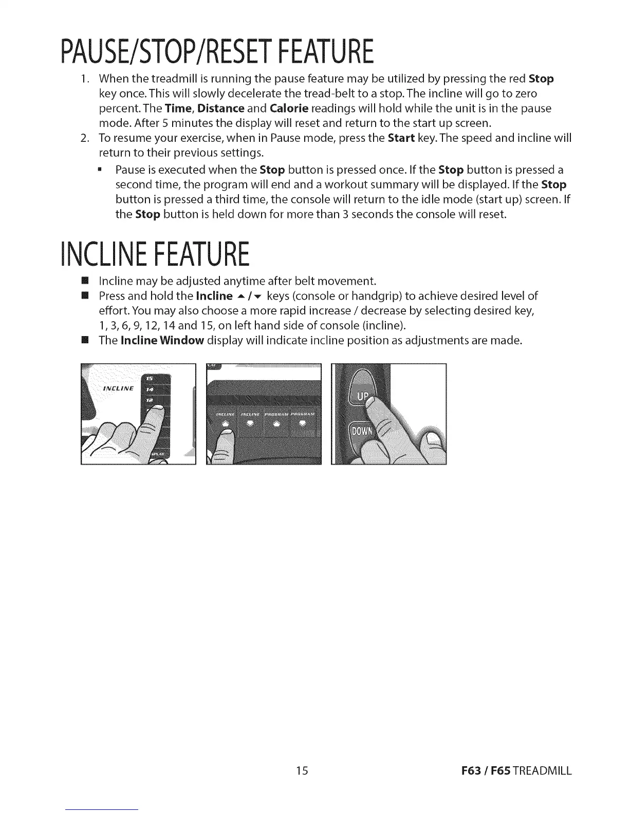 percent.The Time, Distance and Calorie readings will hold while the unit is in the pause
