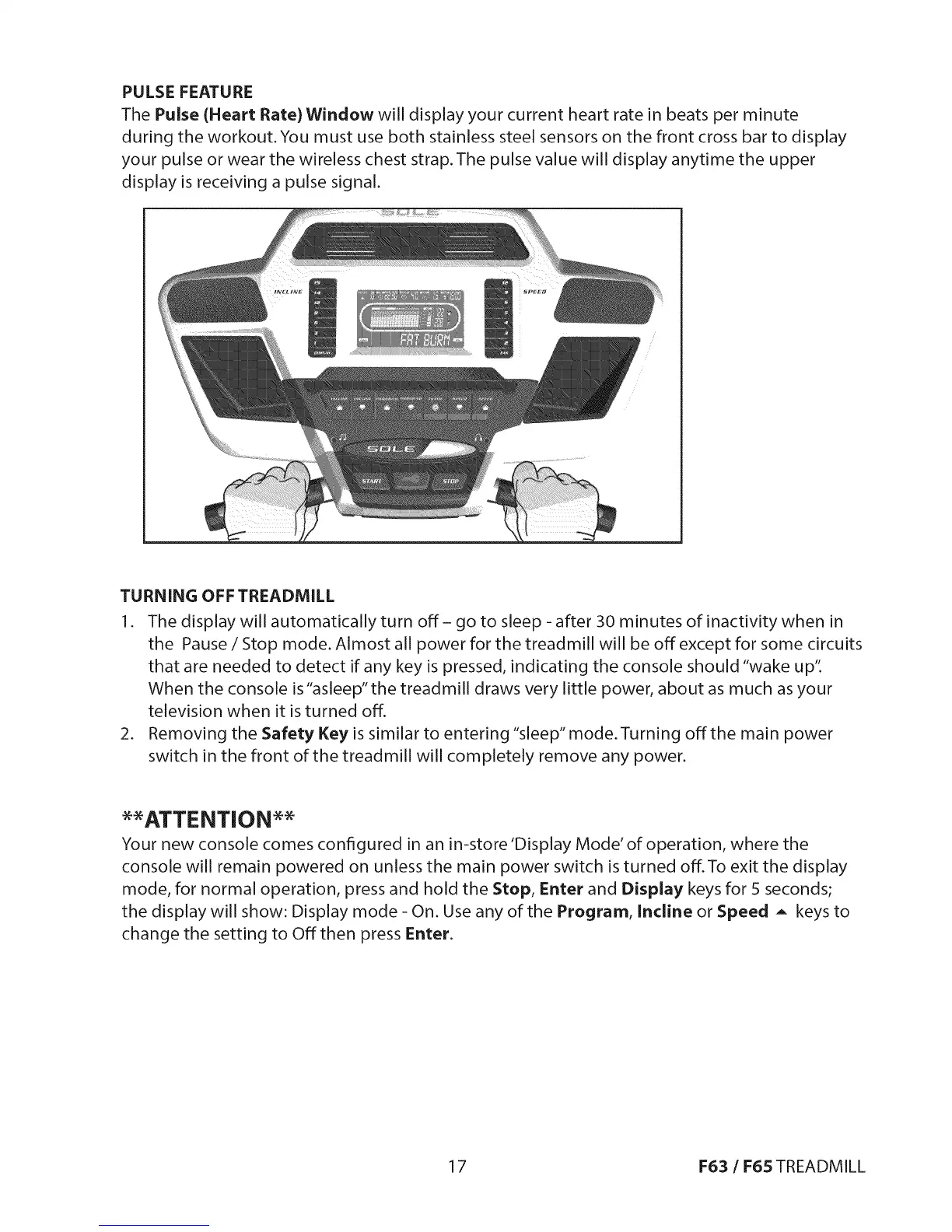 the display will show: Display mode - On. Use any of the Program, Incline or Speed A keys to