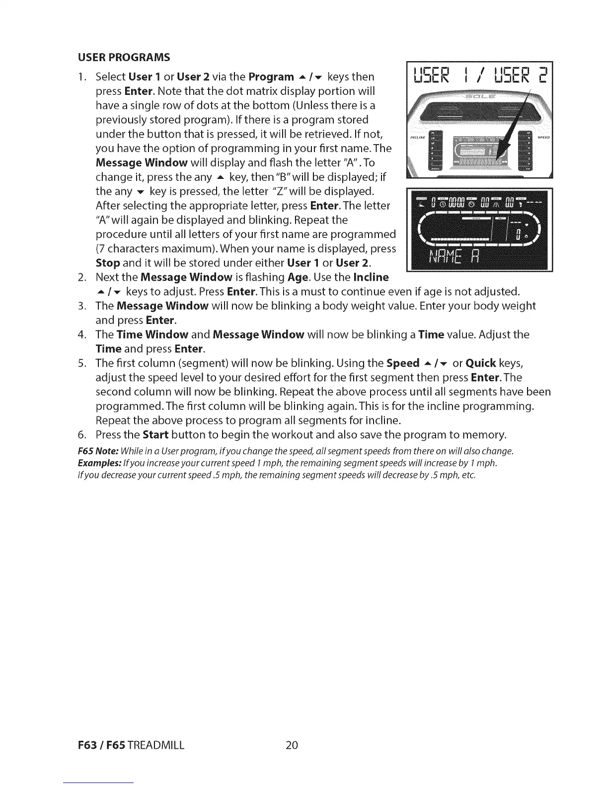F65 Note: While in a User program, ifyou change the speed, all segment speeds from there on will also change.