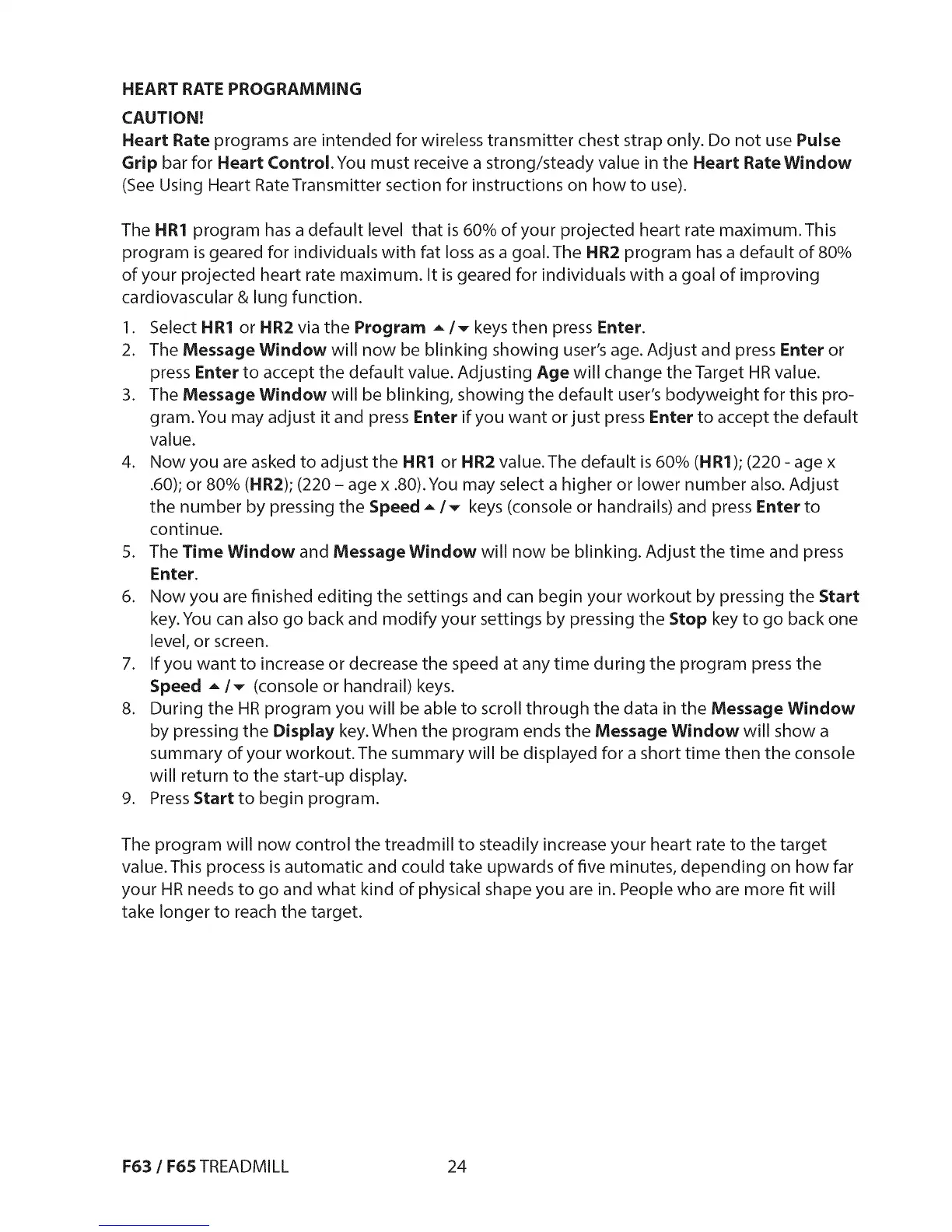 The HR1 program has a default level that is 60% of your projected heart rate maximum.This