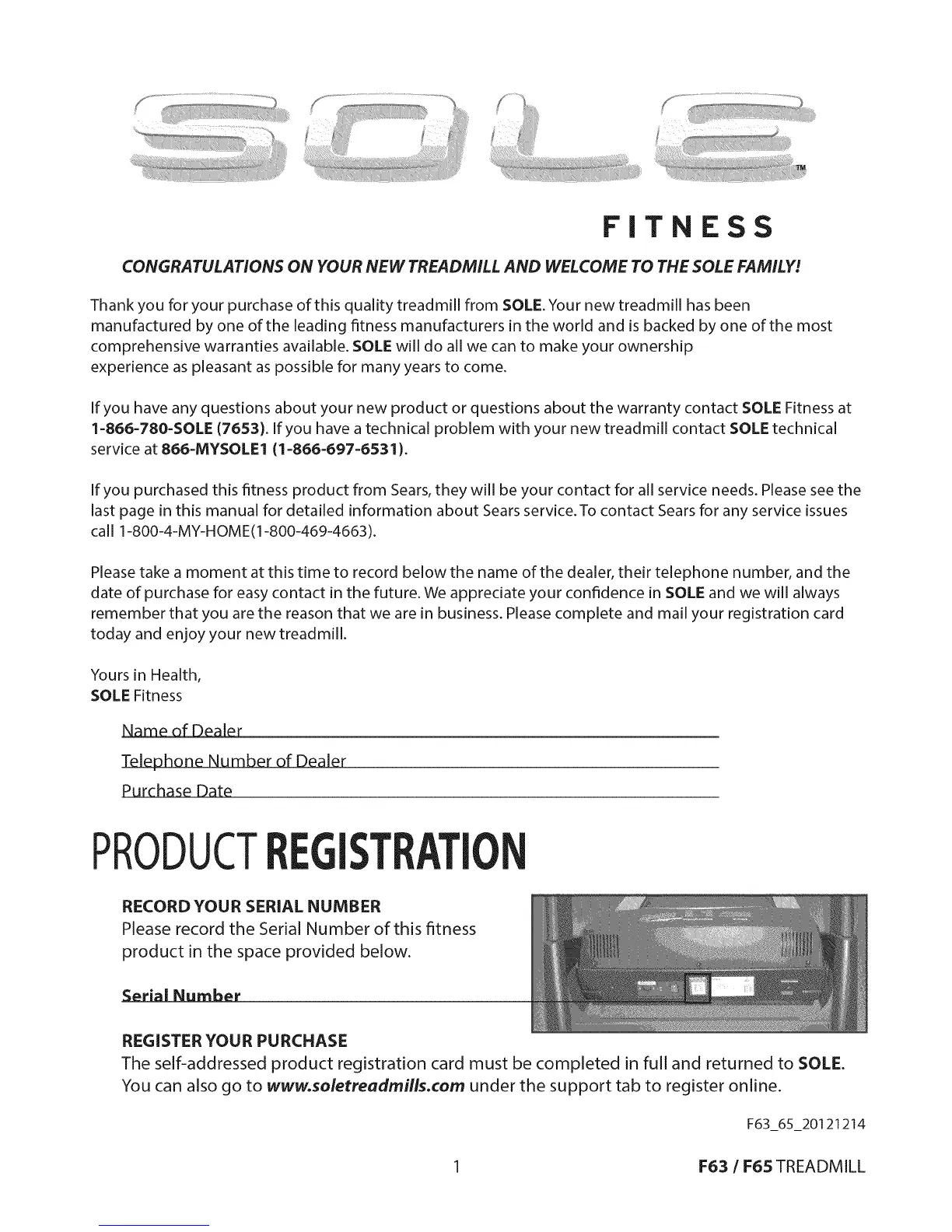 If you have any questions about your new product or questions about the warranty contact SOLE Fitness at