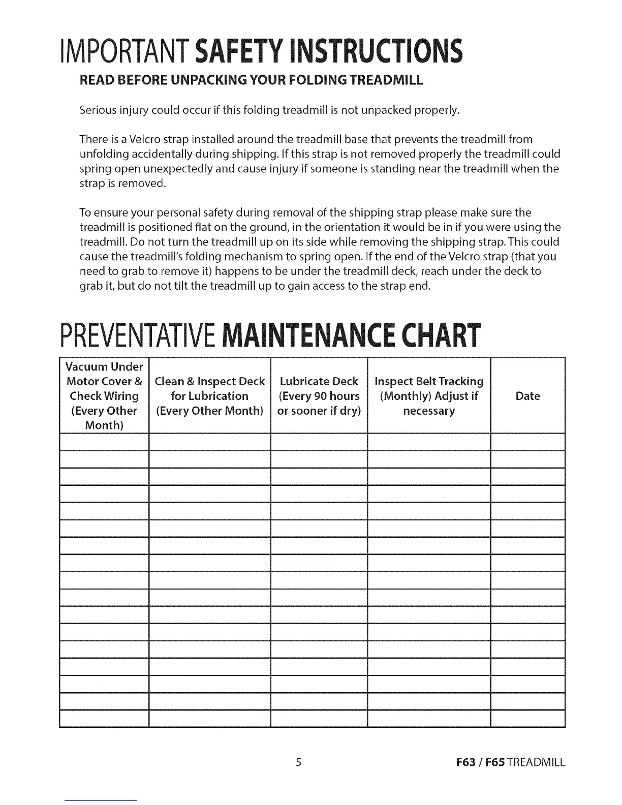 READ BEFORE UNPACKING YOUR FOLDING TREADMILL